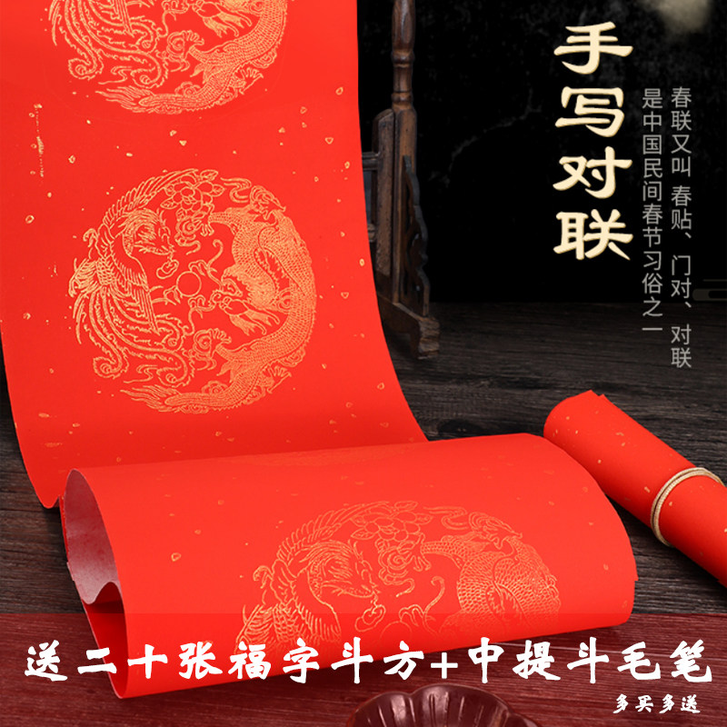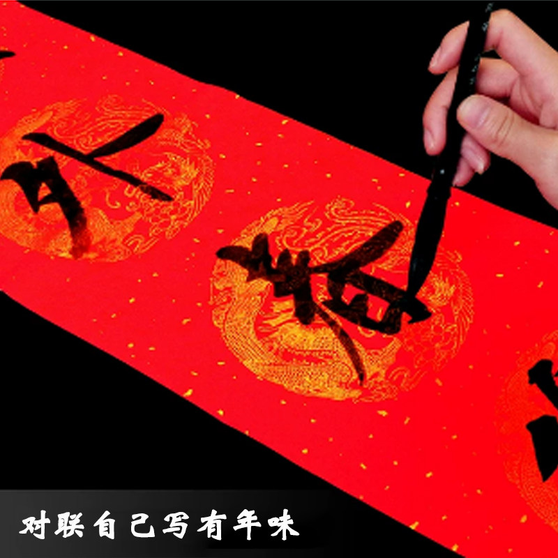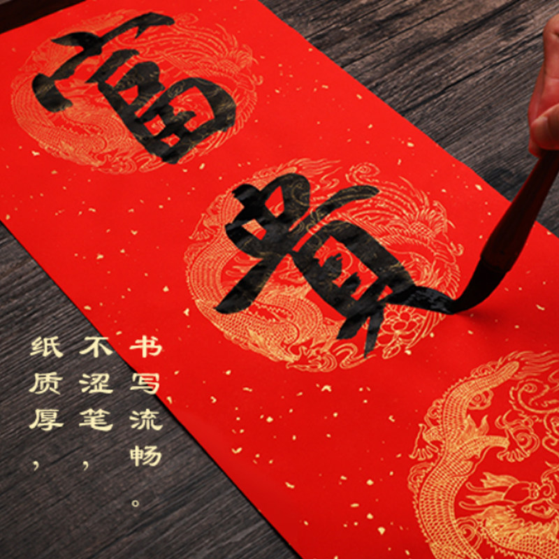 Wannian Red White Passion Paper Xuan Paper Spring Festival Festival Seven -Шарактер, девять -символьная каллиграфия бумага посыпать золотую плитку горизонтальным одобрением