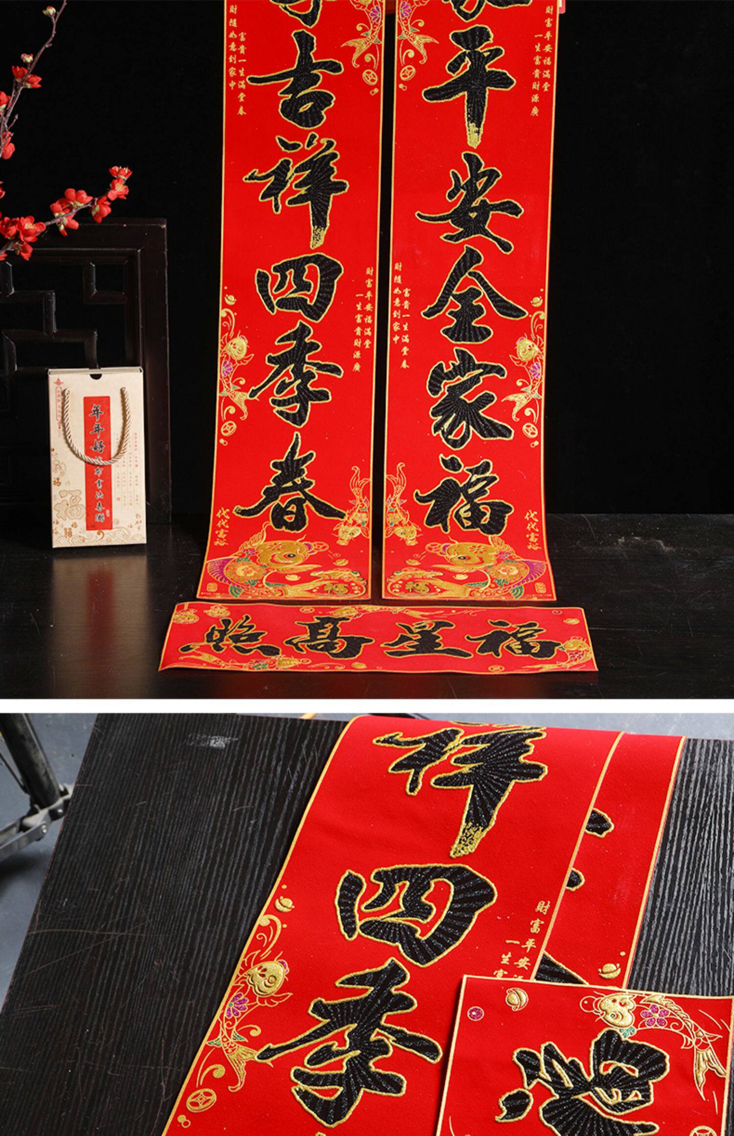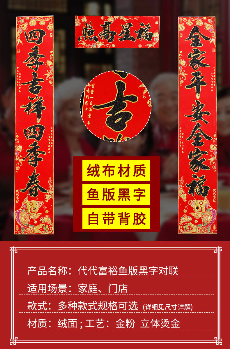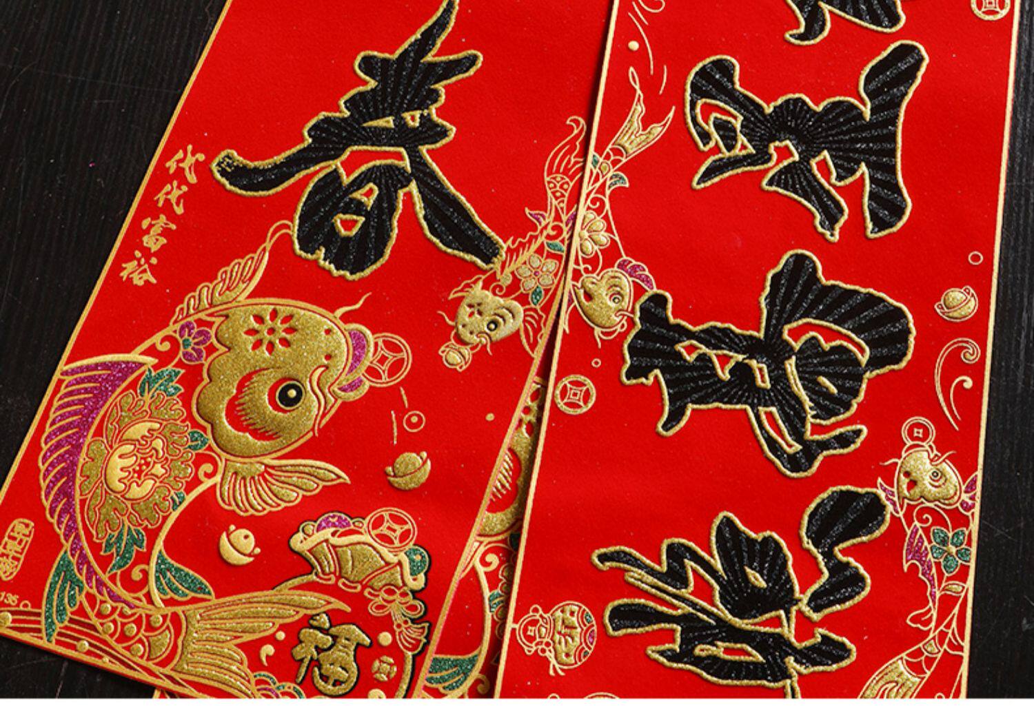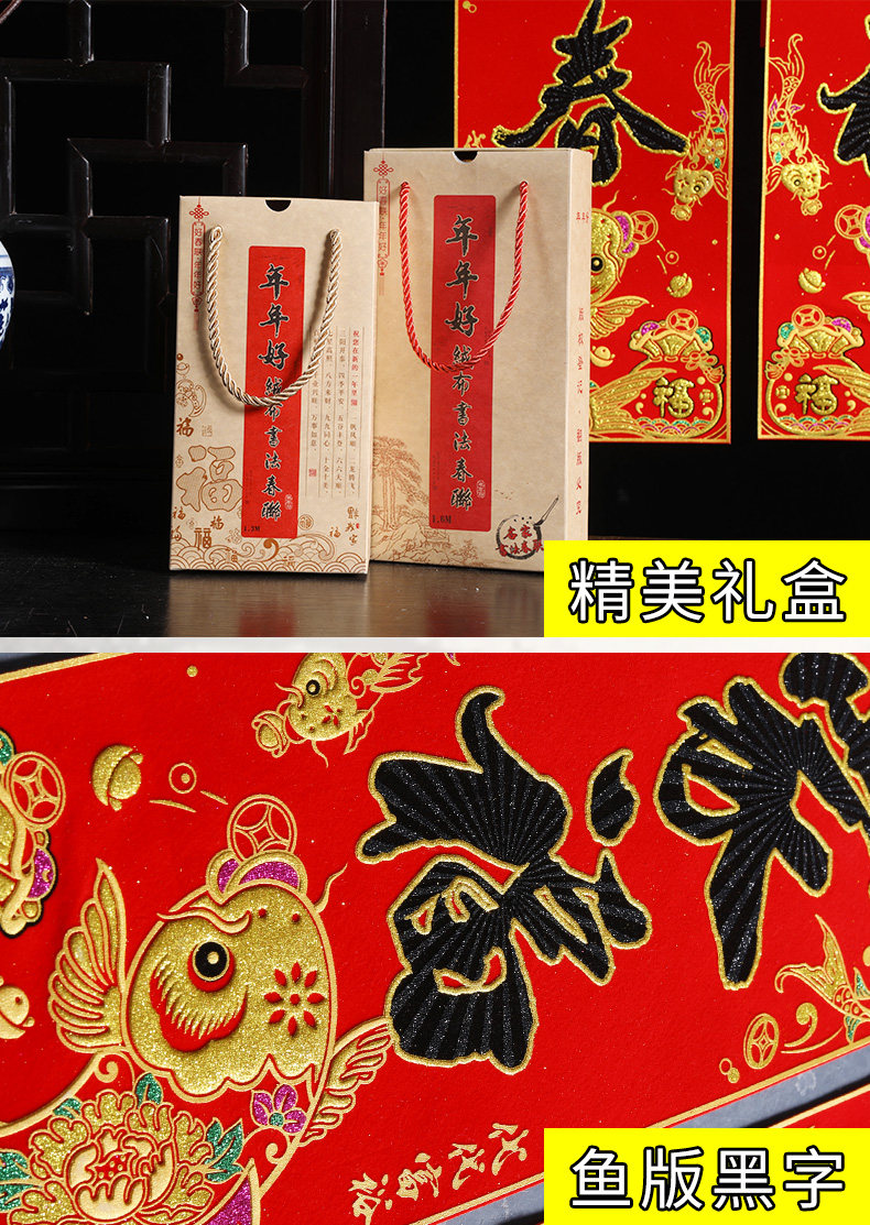 Новый бархатный пары The Couplet Gate Spring Festival Couple 2021 Spring Festival Год скота Госпол к новомуднему входной двери Пара пары рыбы версия Black