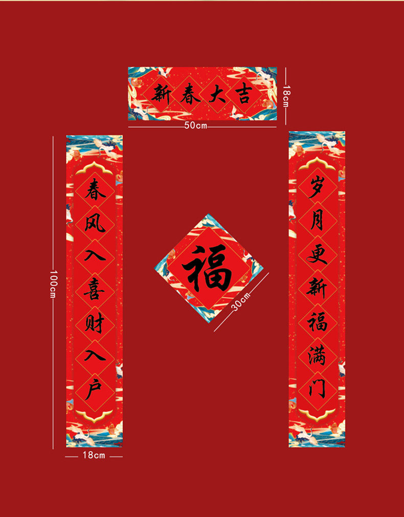 Наклейка на дверь персонажа Фу, новогодний подарочный набор, 2023 год Кролика, новогодние куплеты, украшение праздника весны, китайский узел, творчество