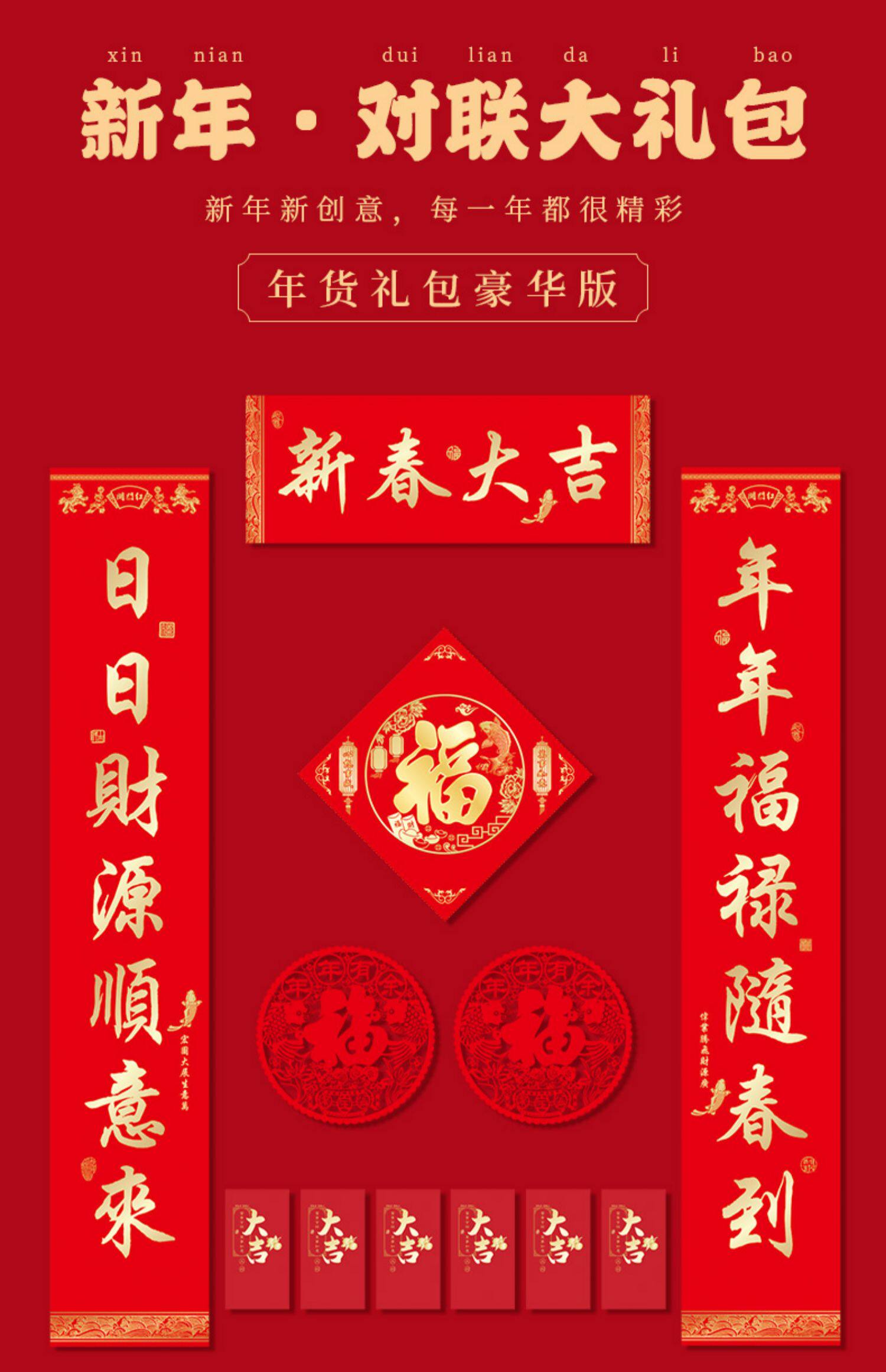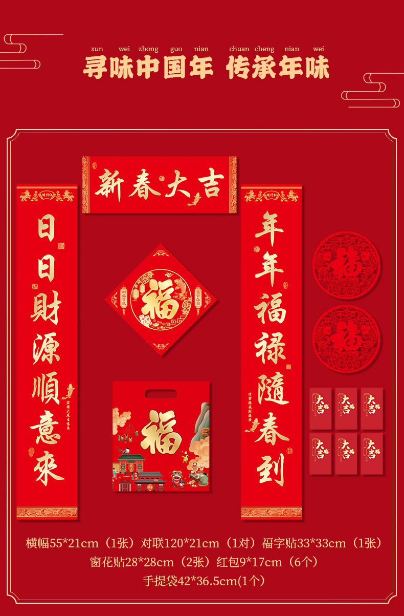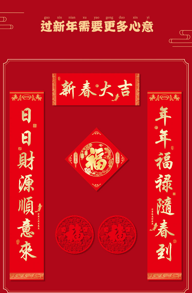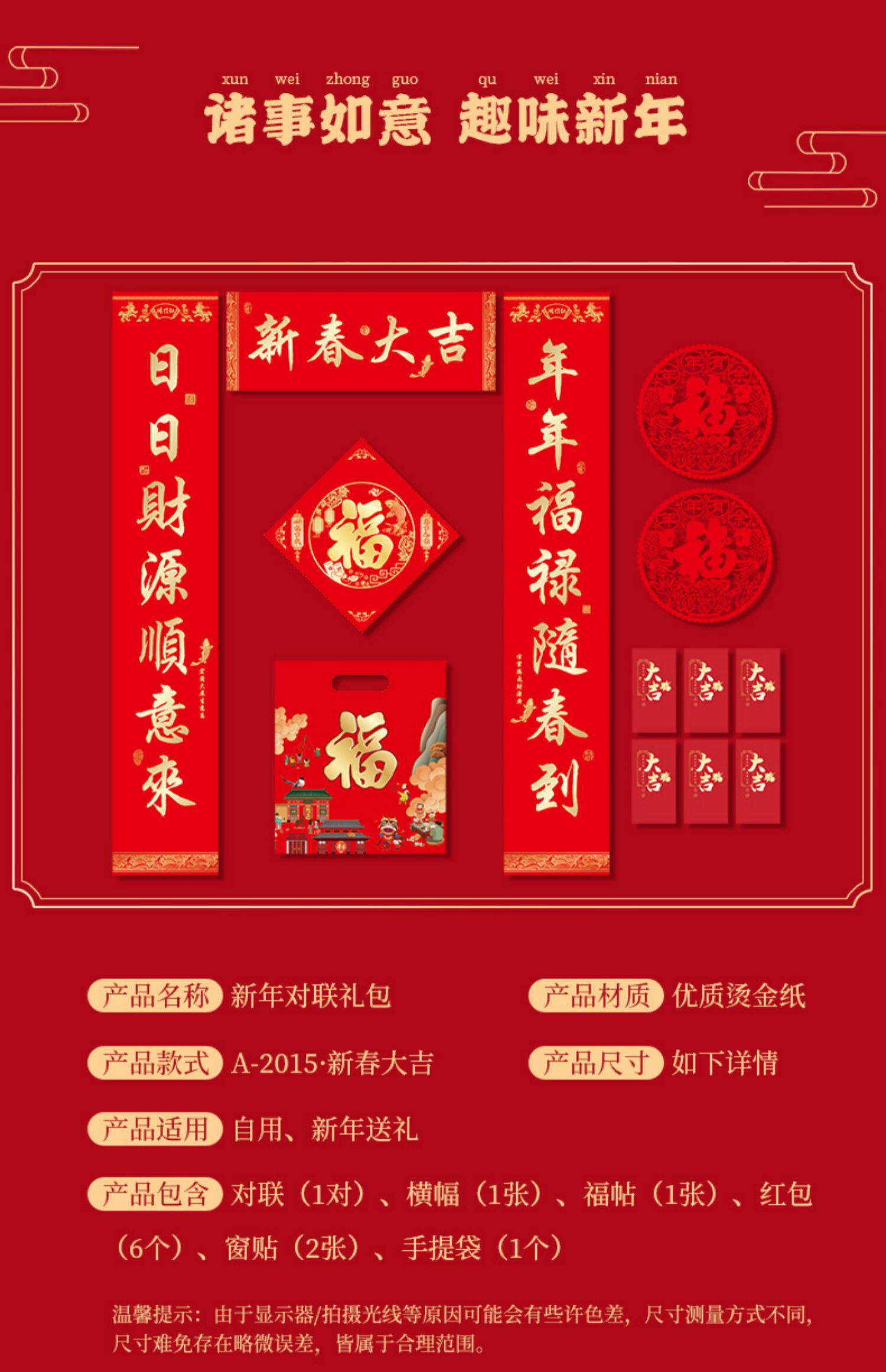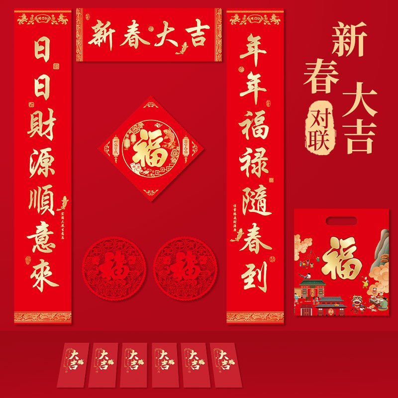 Новогодний куплет 2021 Год Быка Фестиваль весны Куплет Подарочный пакет Новогоднее украшение Весенний куплет Красный пакет Наклейка на дверь Фортуны Подарочная коробка