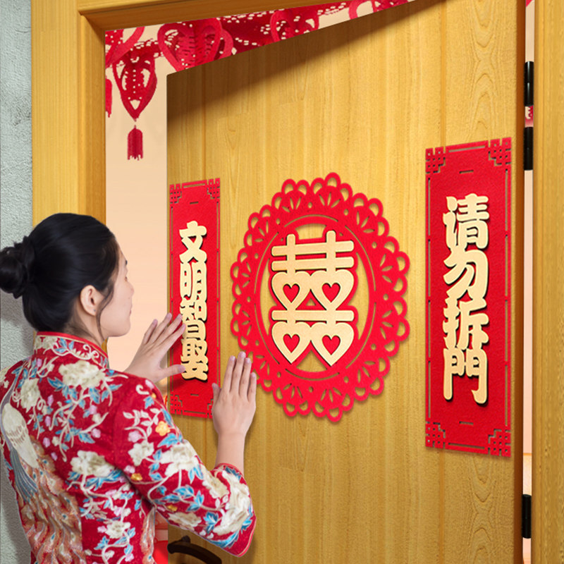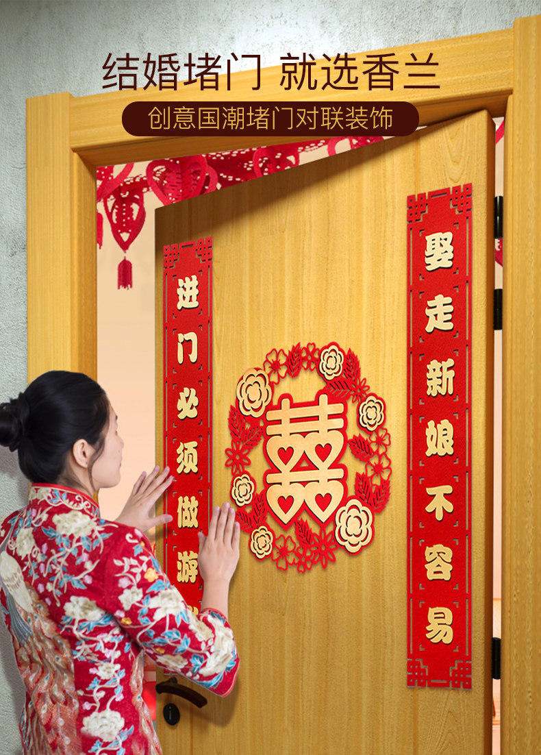 Творческие сестры заблокировали дверь, чтобы забрать родственников и схватить красные конверты и куплет, изготовленные на заказ сцены свадебных комнат, чтобы организовать дверь свадебной комнаты