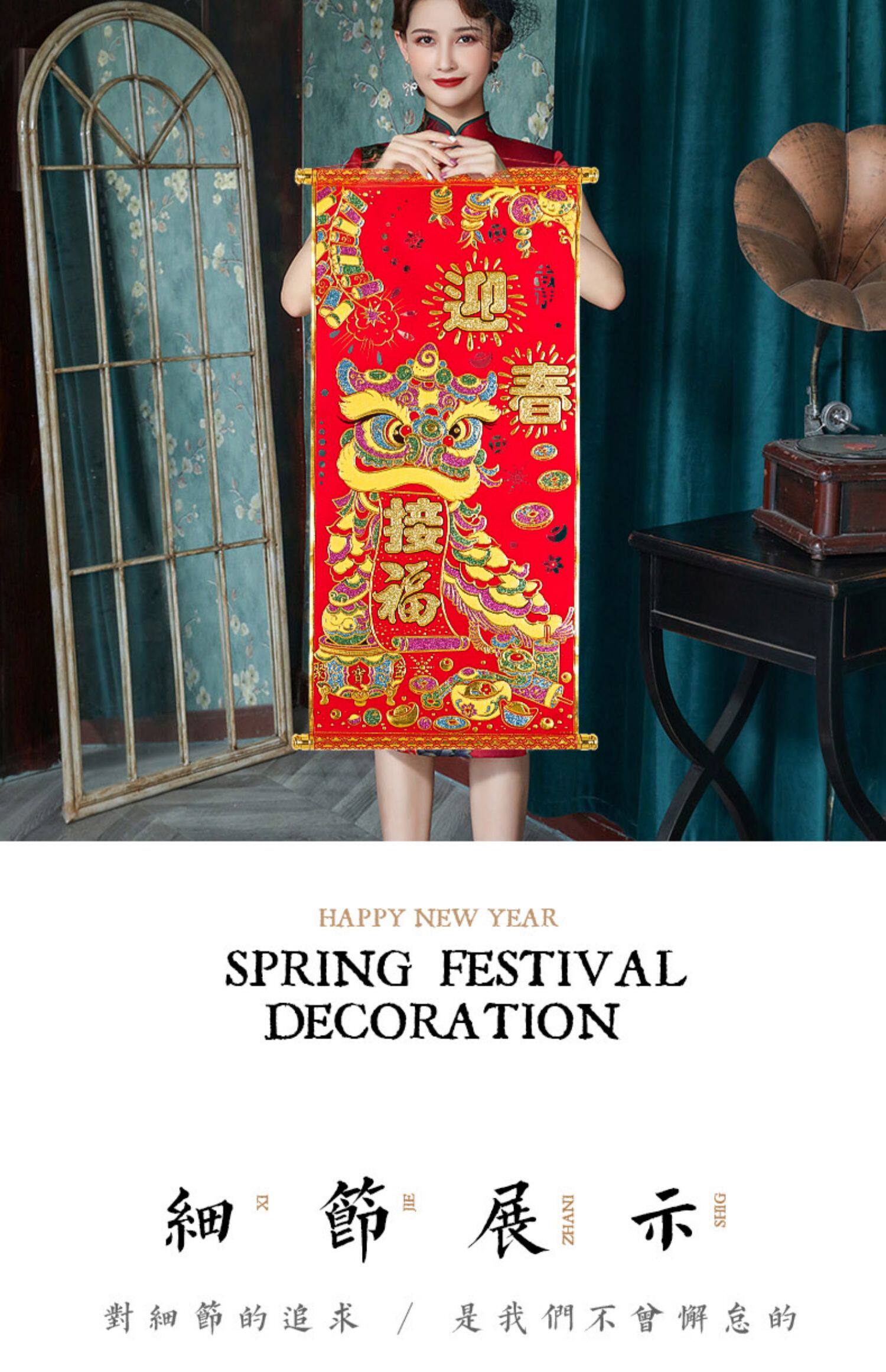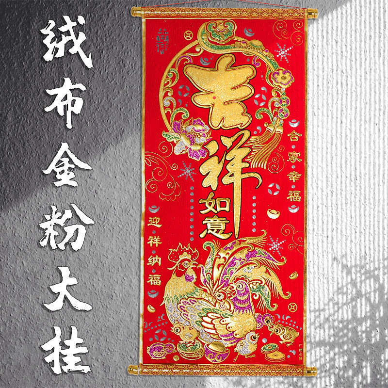Новогодняя новогодняя ткань горячее золото, благословение персонажей, гостиная, висящие картины, куплет Qiao Qiao Kai Kaikang Lianlian сельский дом живопись