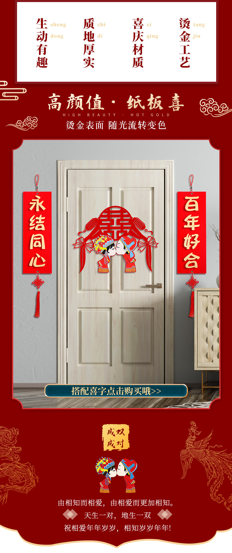 Небольшой куплет для украшения свадебной комнаты, подвеска, креативная наклейка на дверь, макет стены, горячее тиснение, праздничная свадьба, свадебный кулон в китайском стиле