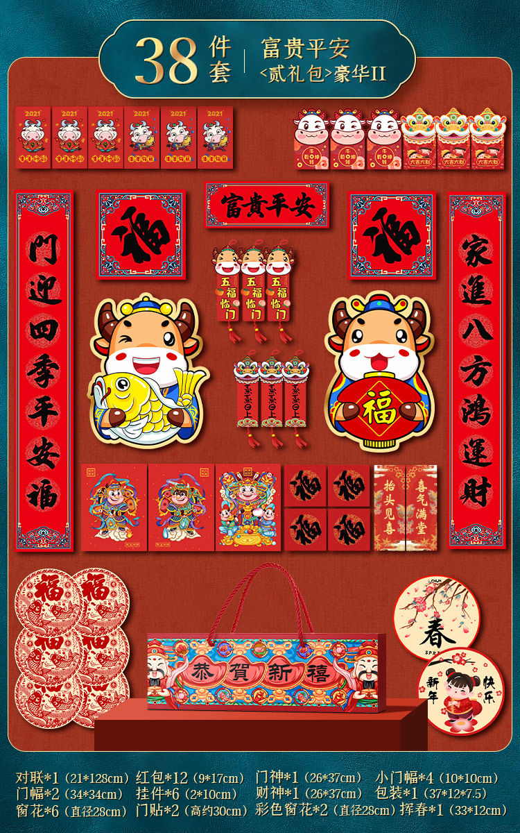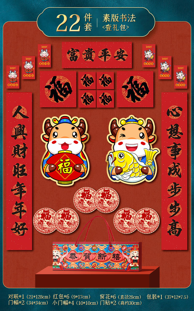 [Lieer Exclusive] 2021 г. Niu Niu Niu Niu Niu Nian Пациенты Spring Festival Семейные фестивальные фестивальные фестивальные фестивальные федерации ворот новогоднего украшения для новой домашней двери