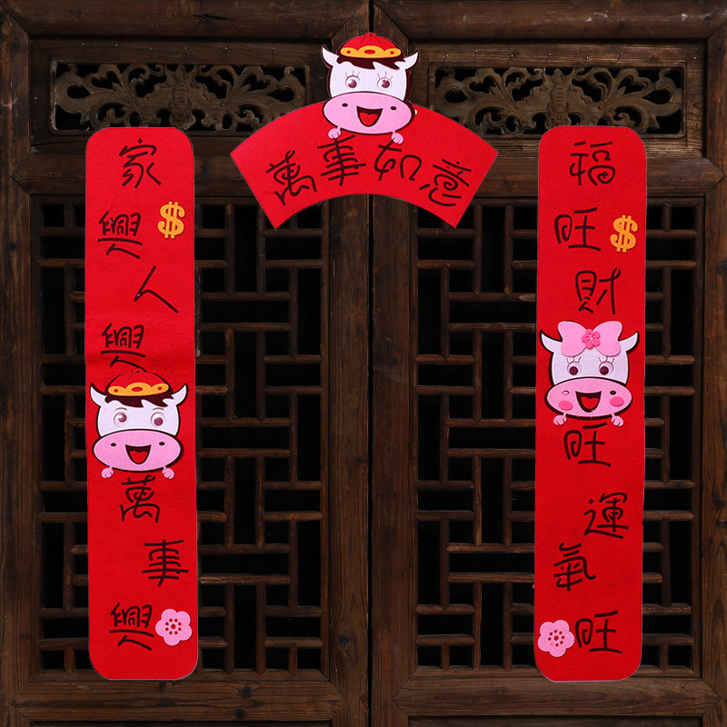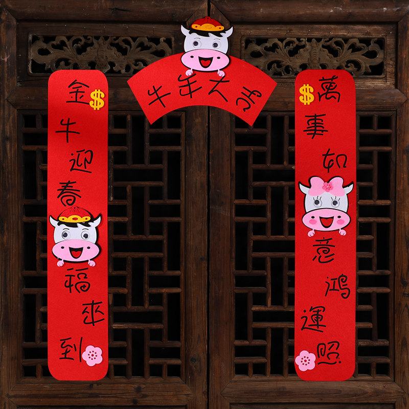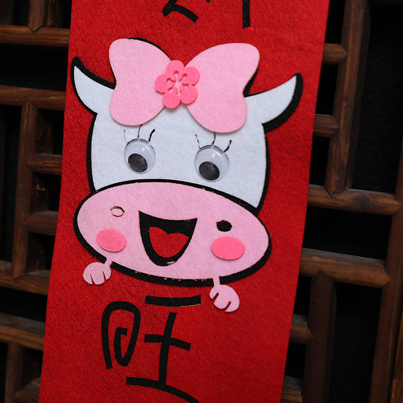 Год весеннего фестиваля в новом году нового года Niu niu nian ne -woven non -woven non -new Year's Frebine Creative Cartoon Blessing Word Word Spring Couple Patch