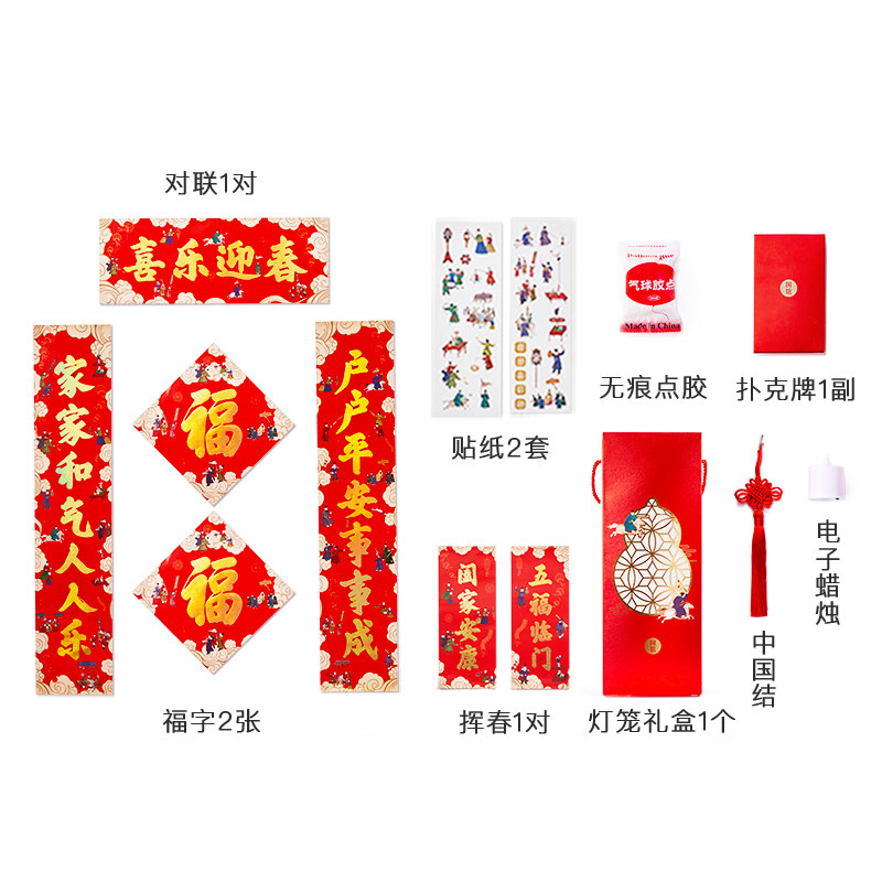 Национальный павильон 2022 Весенний фестиваль подарочный пакет Spring Festival Couplet Новый год Новый год на извилистые окна цветочный фонарь покер