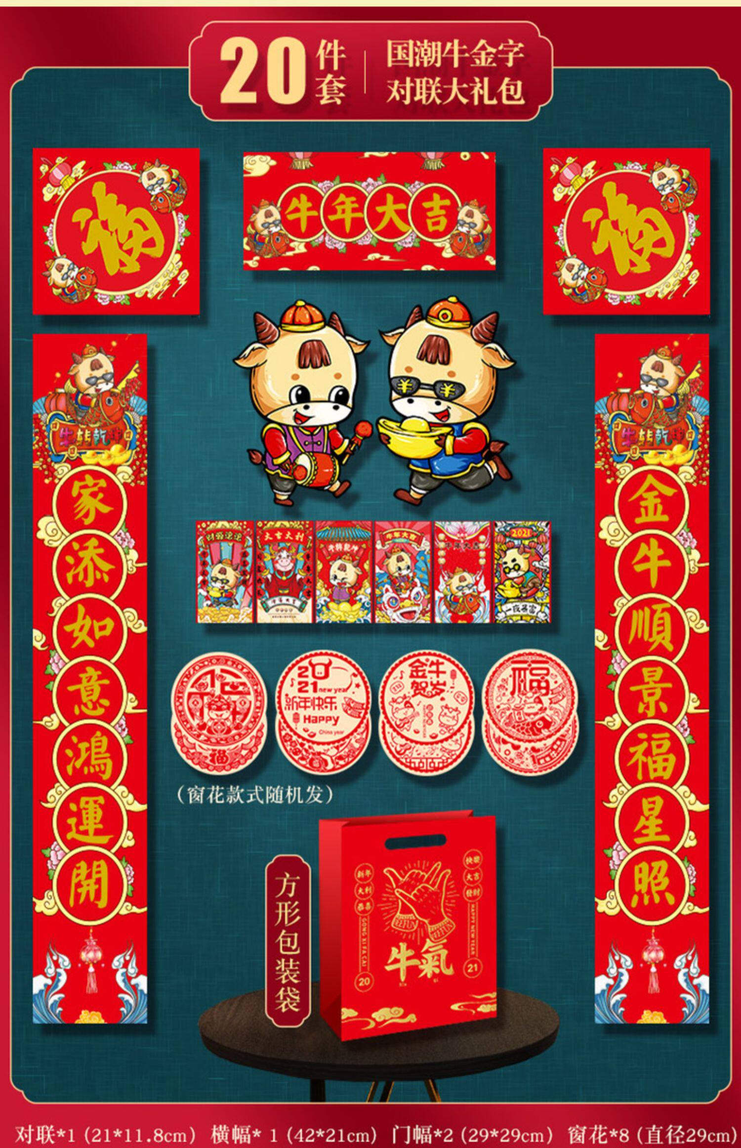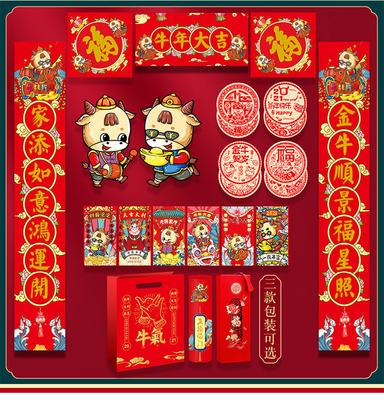 2021 Год Быка Куплет Новогодний Весенний Фестиваль Куплет Бумага Индивидуальные Фу Слово Наклейка На Дверь Красный Пакет Высококлассный Подарочный Пакет Новогодний Весенний Фестиваль Украшения