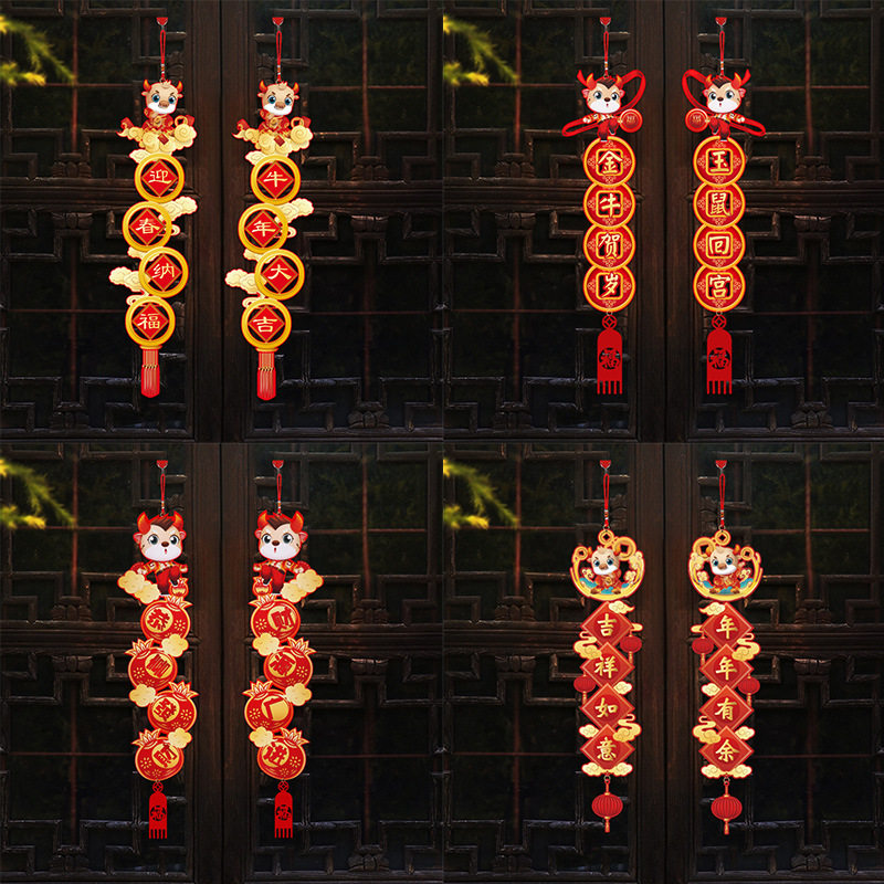 2021 Новогоднее украшение Год Быка Наклейки на дверь Праздник весны Домашние куплеты Макет сцены Домашняя дверь Весенние куплеты Новогодние висячие куплеты