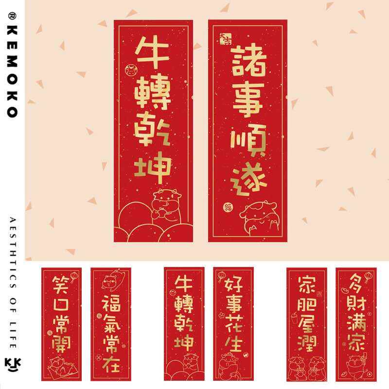 Оригинальный 2021 год Быка, Новый год, маленькие куплеты, праздник весны, благословение, декоративные наклейки на стену, ширина двери, мини-наклейки на двери и окна, горячее тиснение