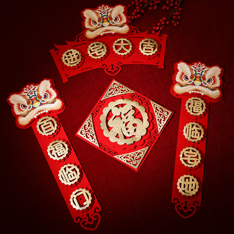 - Color Lion Couplets (Fulin House)+fu zi
