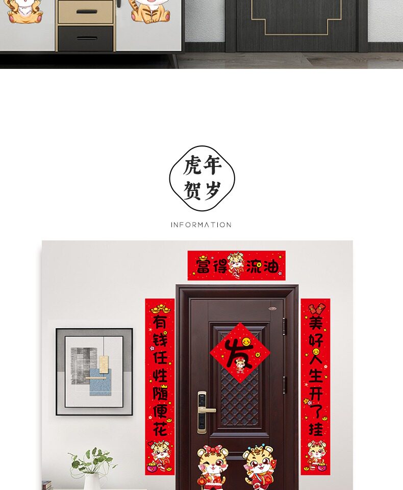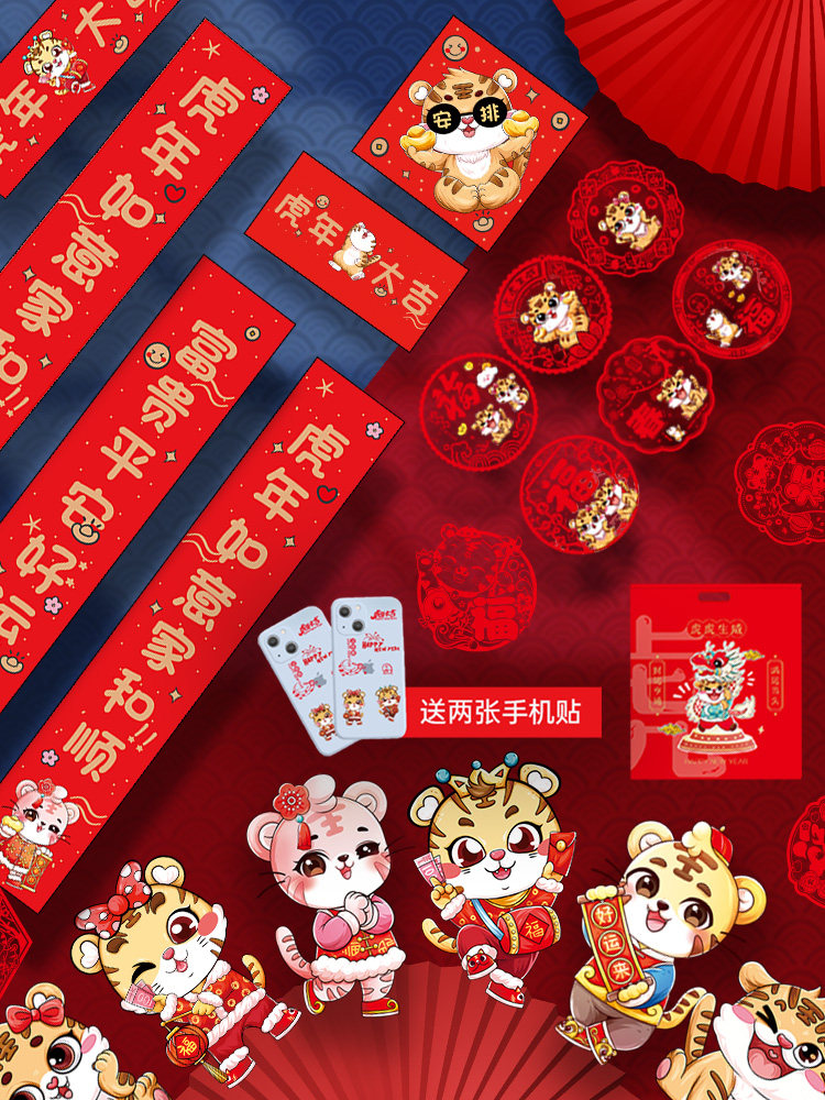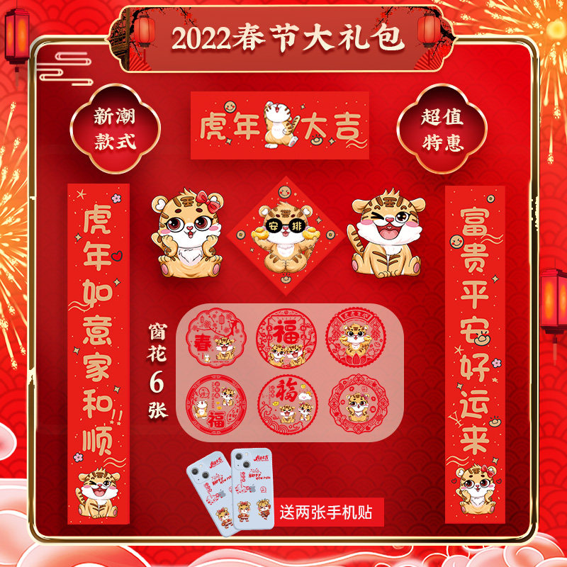 2022 Год Тигра куплеты Праздник Весны домашние мультяшные дверные куплеты Новогодние куплеты подарочная упаковка Новогодние украшения поставки