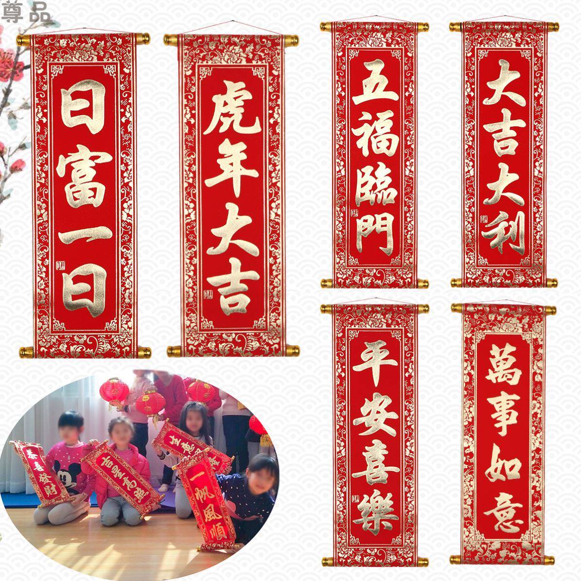 Рука -в -матч в детском саду, фотография, фотография, портативный весенний фестивальный куплет для китайского Нового года, четыреххарактерный свиток года