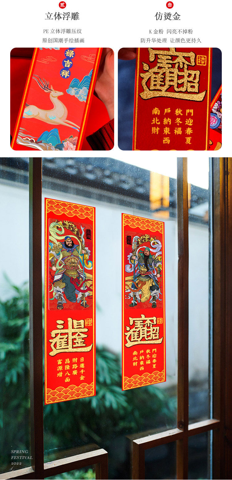 Мини-дверная наклейка на стикер God Gold Foil Relief Персонализированное творческое весеннее куплет весенний куплет весенний куплет пружинный куплет пружинный пальто назад самоклеивание
