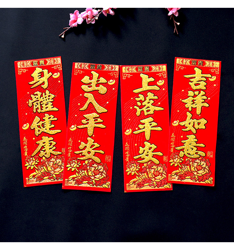 | Цвет: | Хорошее здоровье, Ding Cai Liangwang, Благоприятный Руи, Начать хорошую работу, Пусть все ваши желания сбудутся, Пять благословений, Пусть все пойдет хорошо с тобой, Бизнес, Чжасай Джинбао, Весенние благословения, Плавное плавание, Академический прогресс, Мир приносит деньги, Удачи, Пусть вы будете счастливы и процветаете, Удачи, Путешествуй безопасно, Удача, Shangluo ping'an (бонус), Семейный мир (бонус), Новый классический стиль-shangluo ping'an, Горизонтальная партия: плавное плавание, Горизонтальная партия: wufu linmen, Горизонтальный баннер: Золотой и Джейд Холл, Горизонтальная партия: джи Син Гао Чжао, Горизонтальная партия: вход и безопасность |