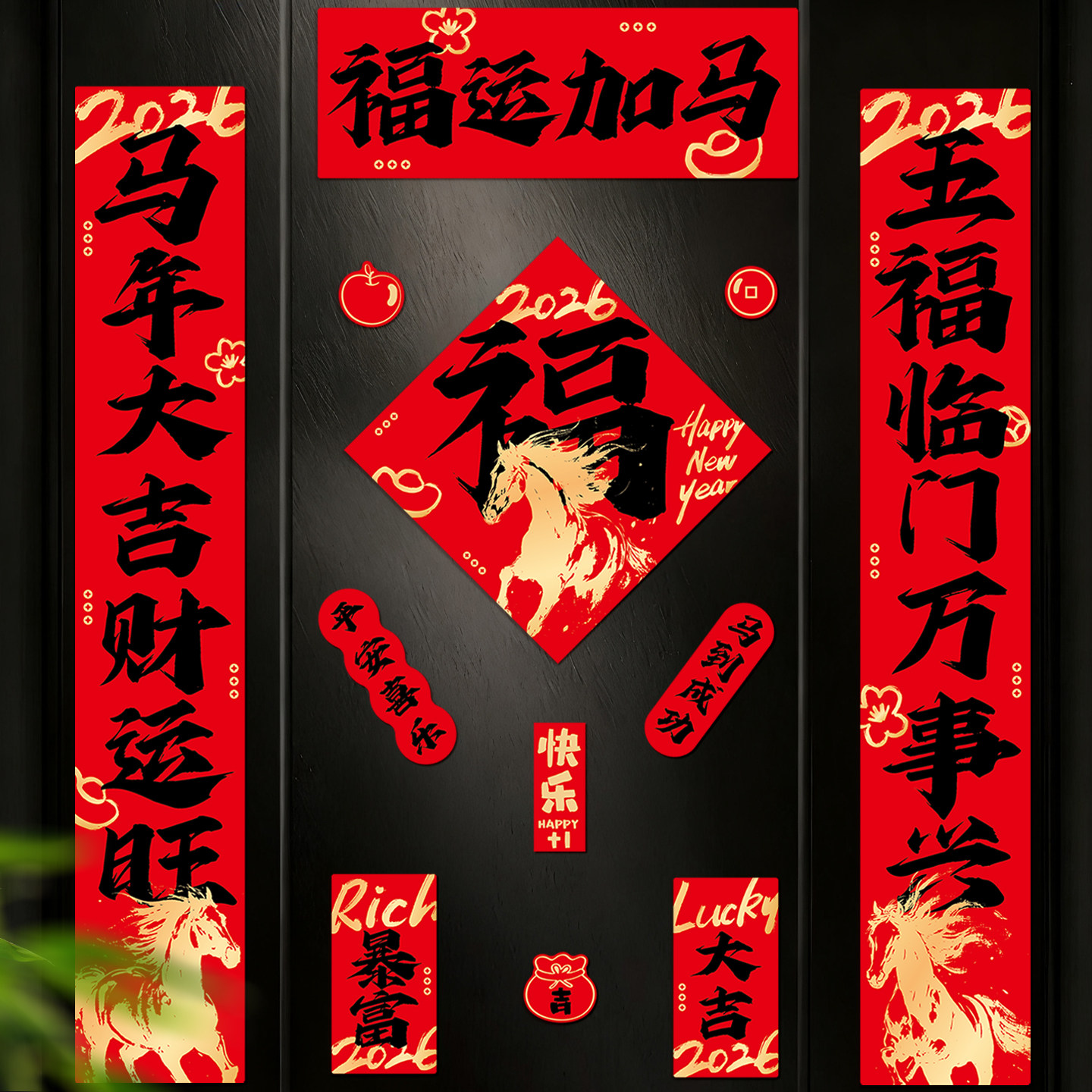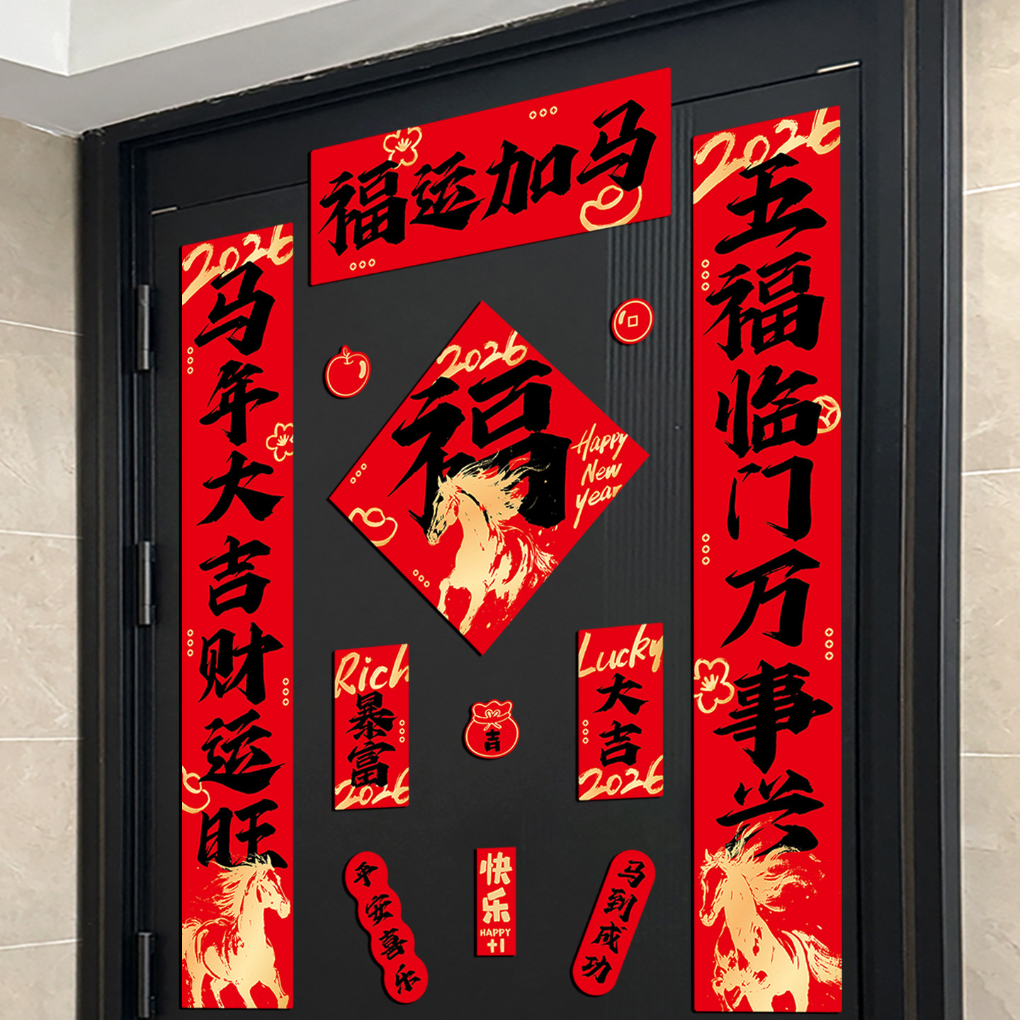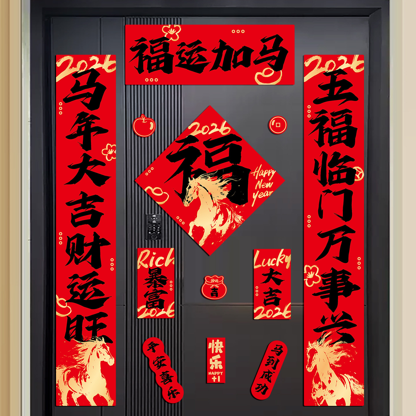 2026 год Лошади, куплеты, магнитные дверные куплеты, новая дверь, железная дверь, магнитные пружинные куплеты, противоугонные дверные благословения, украшение на китайский Новый год