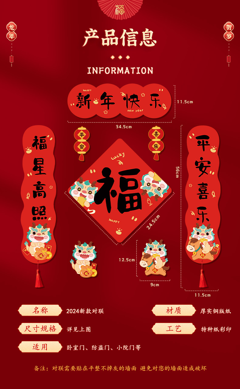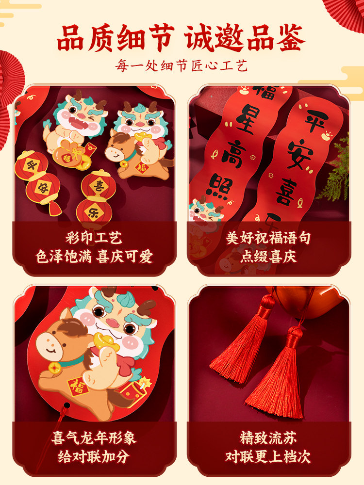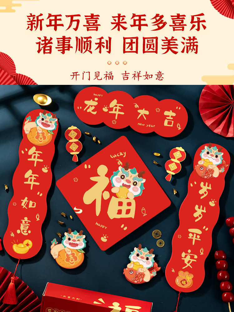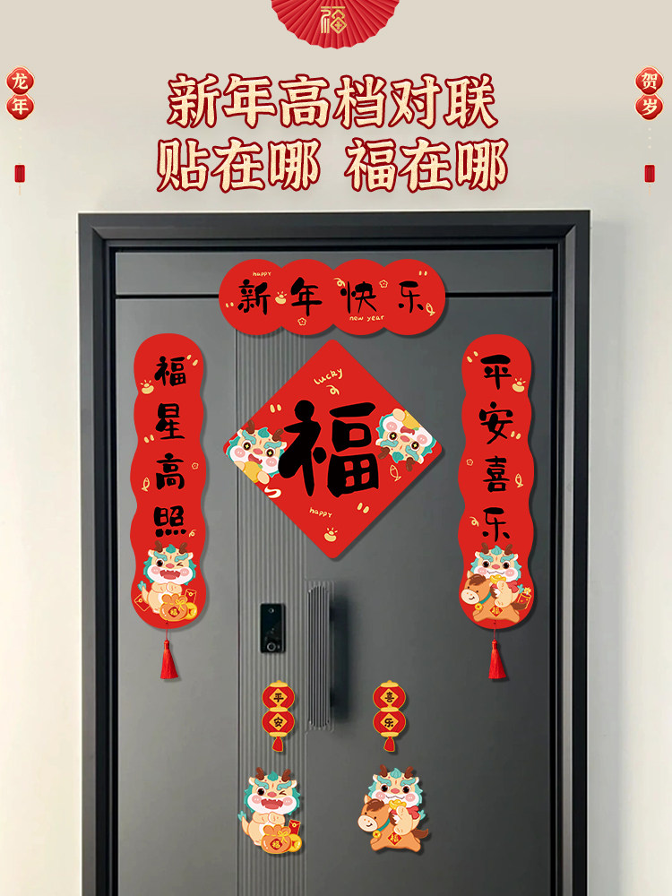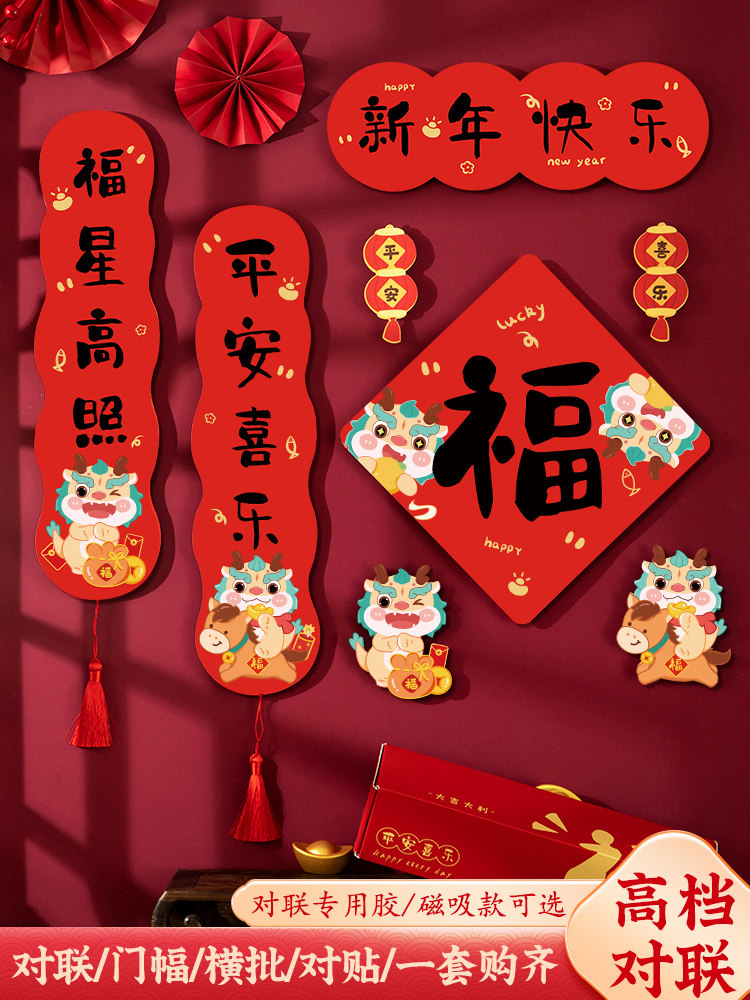 2024 Dragon New Gear Couplet Новый год магнитный подразделение нового национального характера Chaofu Gates Мини -Mini Spring Couplet