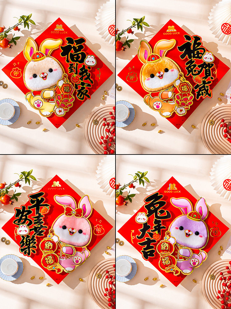Праздник весны для дома 2023 Год Кролика, новое благословение, наклейка на дверь, новогодняя дверь, креативная трехмерная наклейка на дверь, плюшевое украшение высокого класса