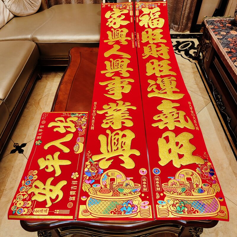 Куплеты Праздника Весны Куплеты Праздника Весны 2026 новая дверь Год Лошади дверные наклейки Новый год Dingcai Liangwang дверные куплеты Новый год бархатная бронза