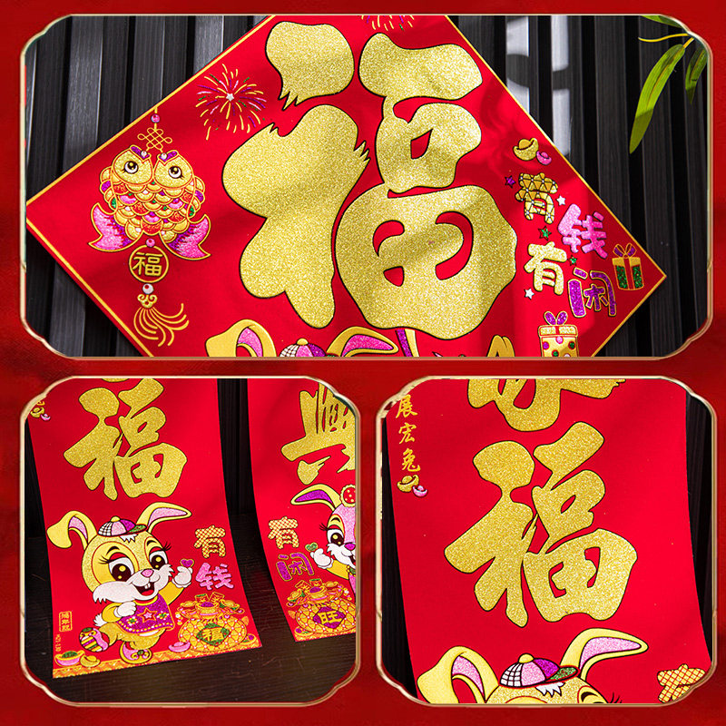 - 1.6#[Черные персонажи 24*147] Дверь приветствует четыре сезона мира и благословения, и процветающее состояние семьи процветает