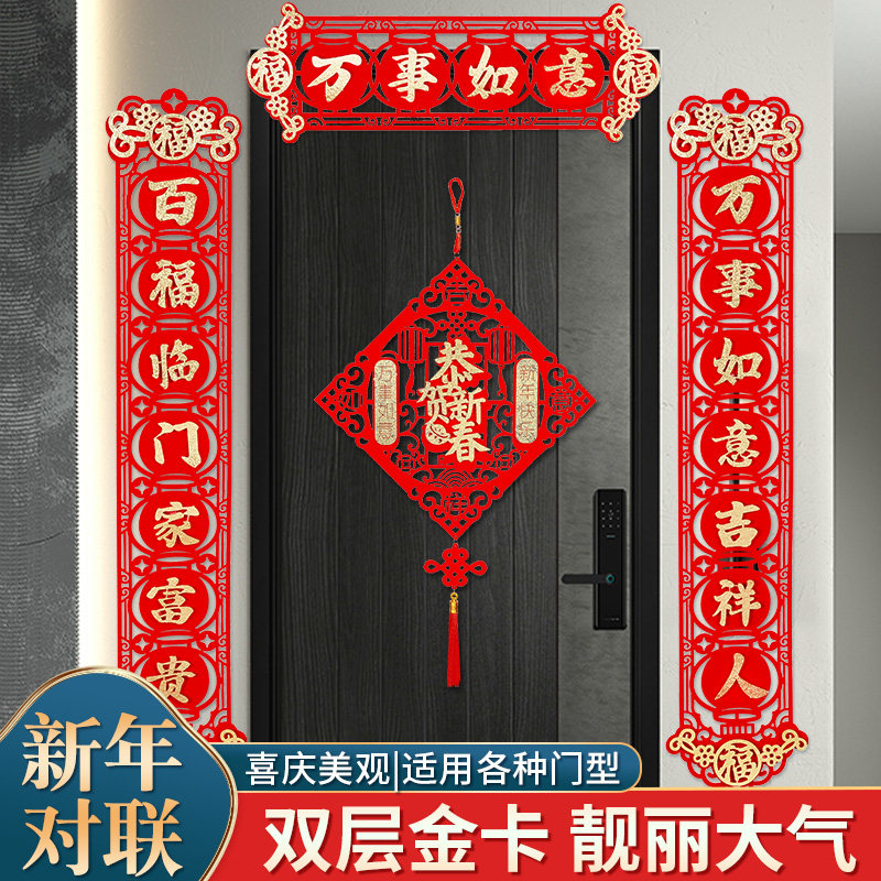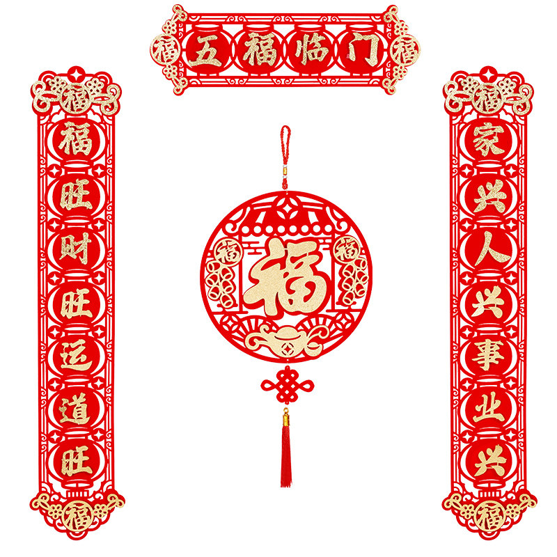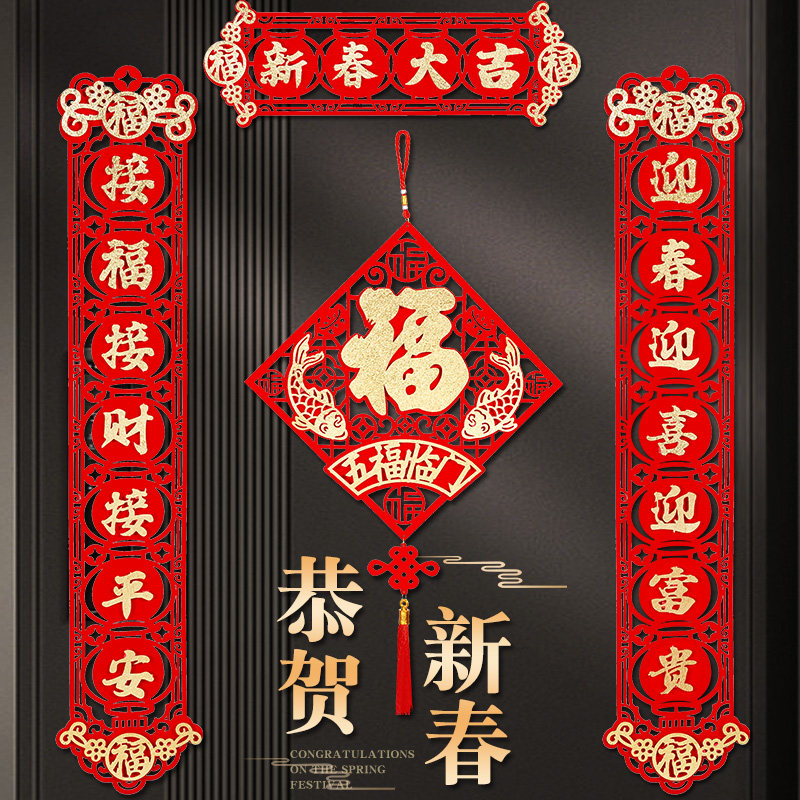 2023 Новый год весенний фестиваль Благословение Пара новогоднего украшения поставляет горячее золото бархат, встроенные наклейки на дверь творческие идеи