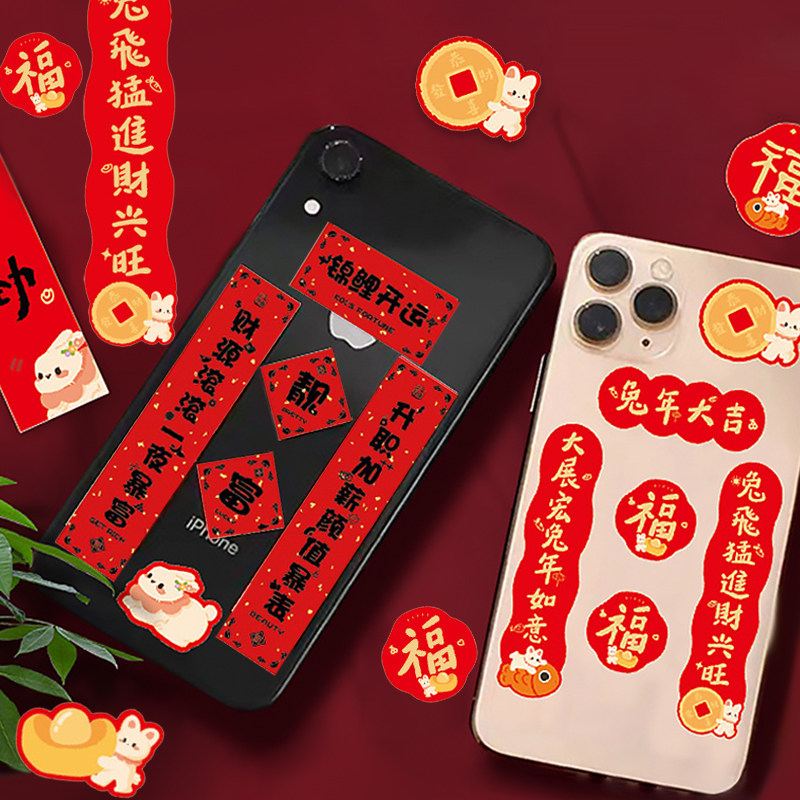 Маленький мобильный телефон, весенняя наклейка, коллекция 2023, год кролика