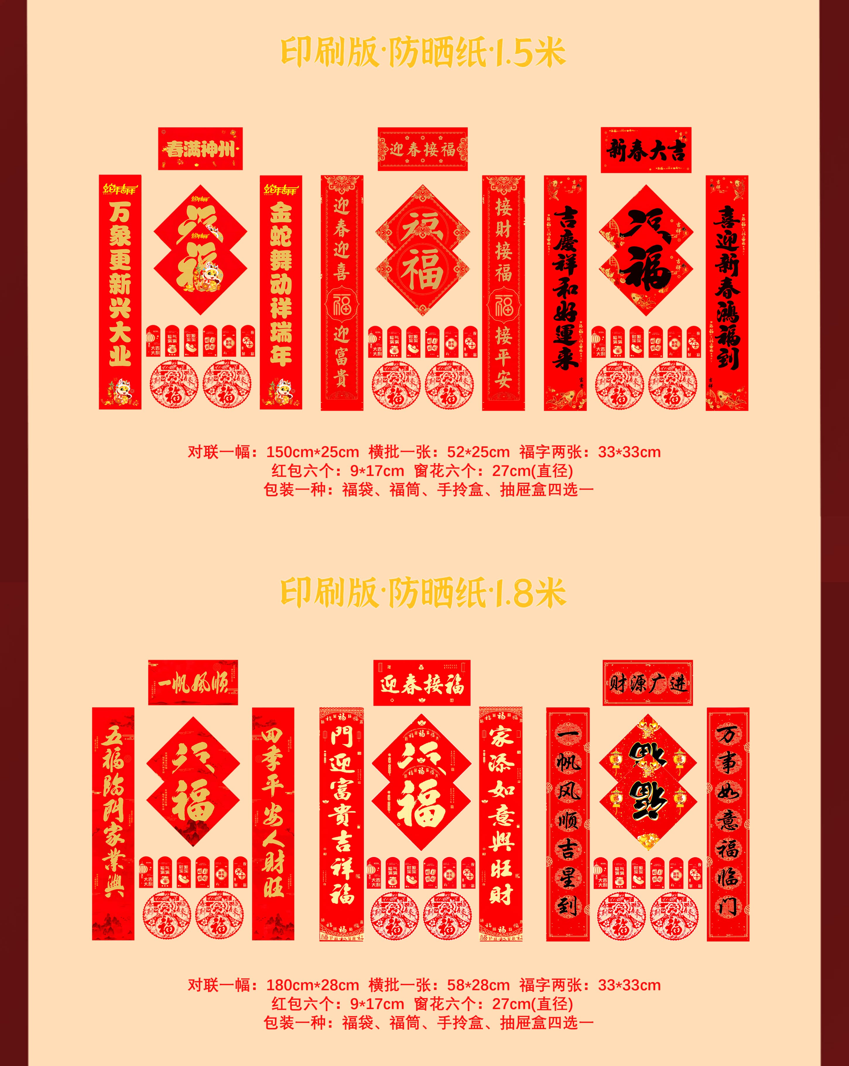 - 1,8 м. «Пять благословений» — напечатано черной каллиграфией.