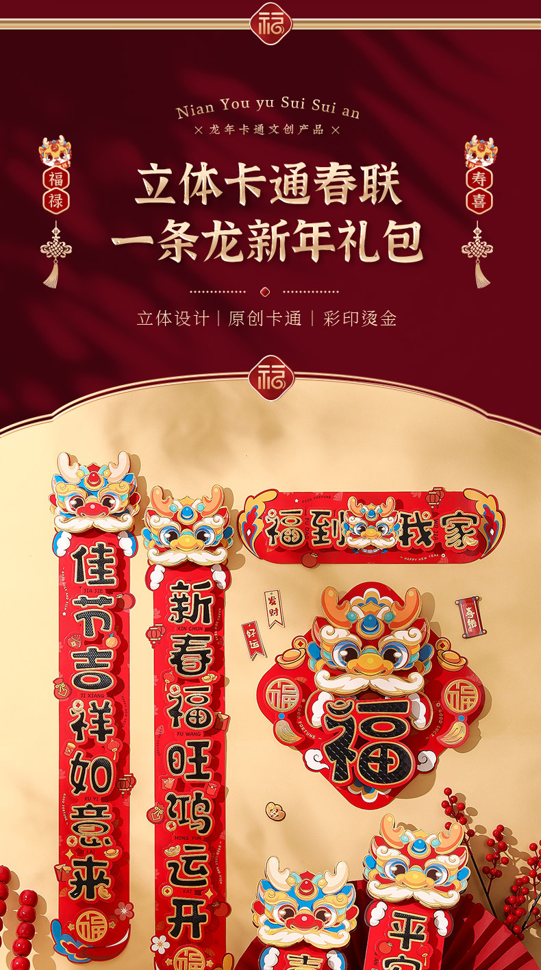 Couplet 2024 Spring Festival Dragon New Year's Новая пользовательская карта прошла новую годовую Gate Di Новый год Diy Decorative Spring Festival Couplet