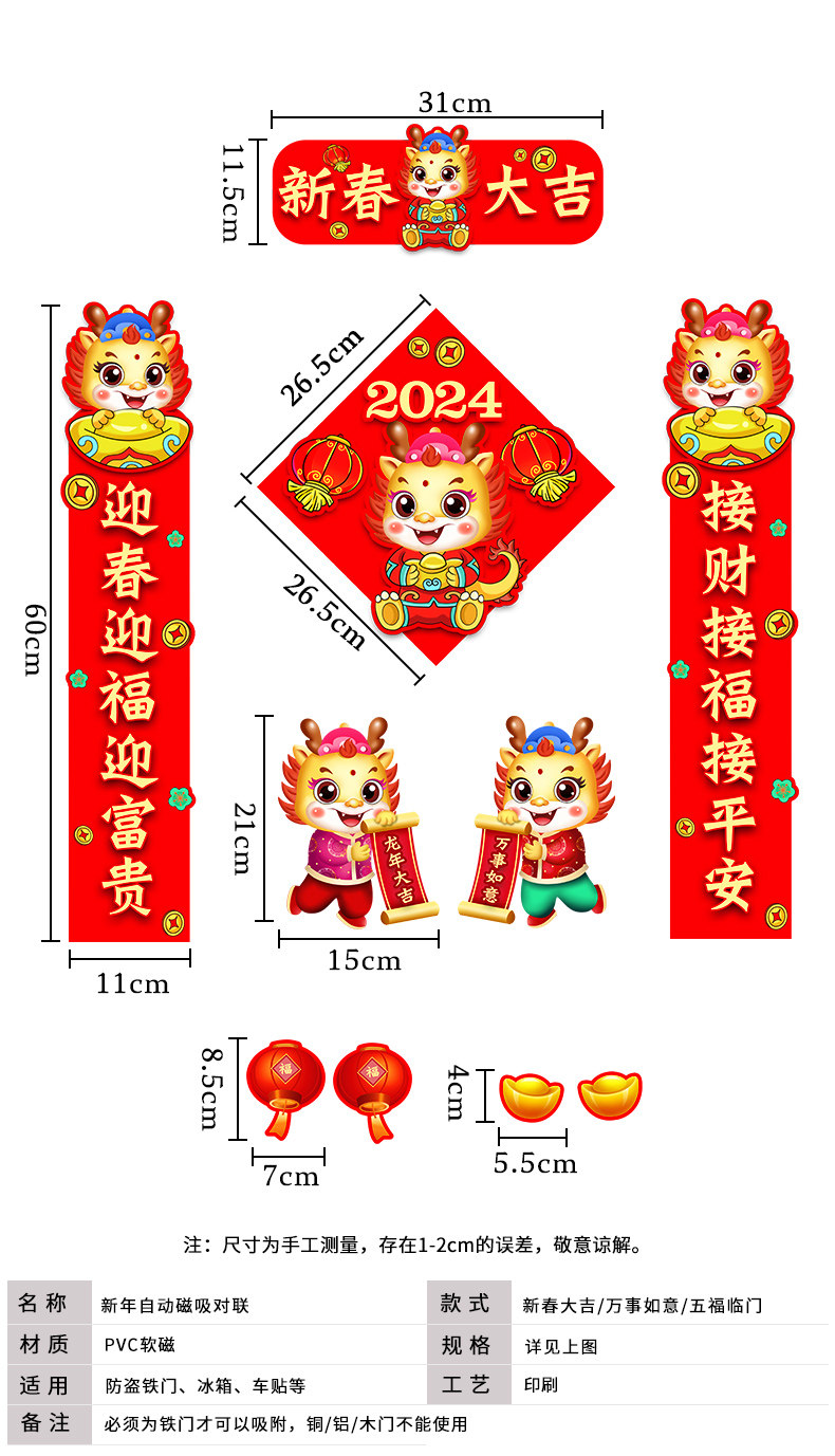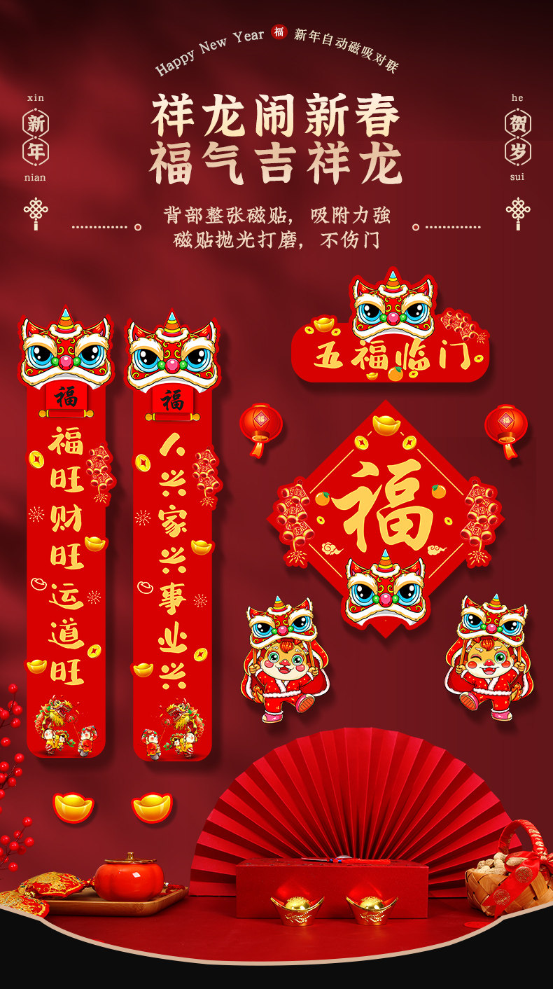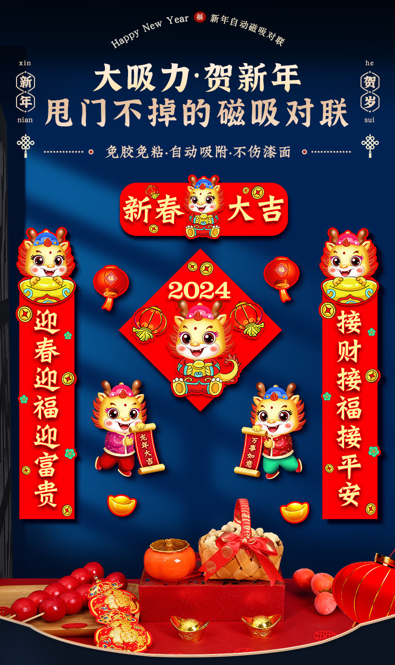 Новогодний весенний фестиваль декоративная магнитная пара всасывания весенний фестиваль весенний фестиваль входная дверь дверь дверь пост 2024 Новая пара дракона 2024