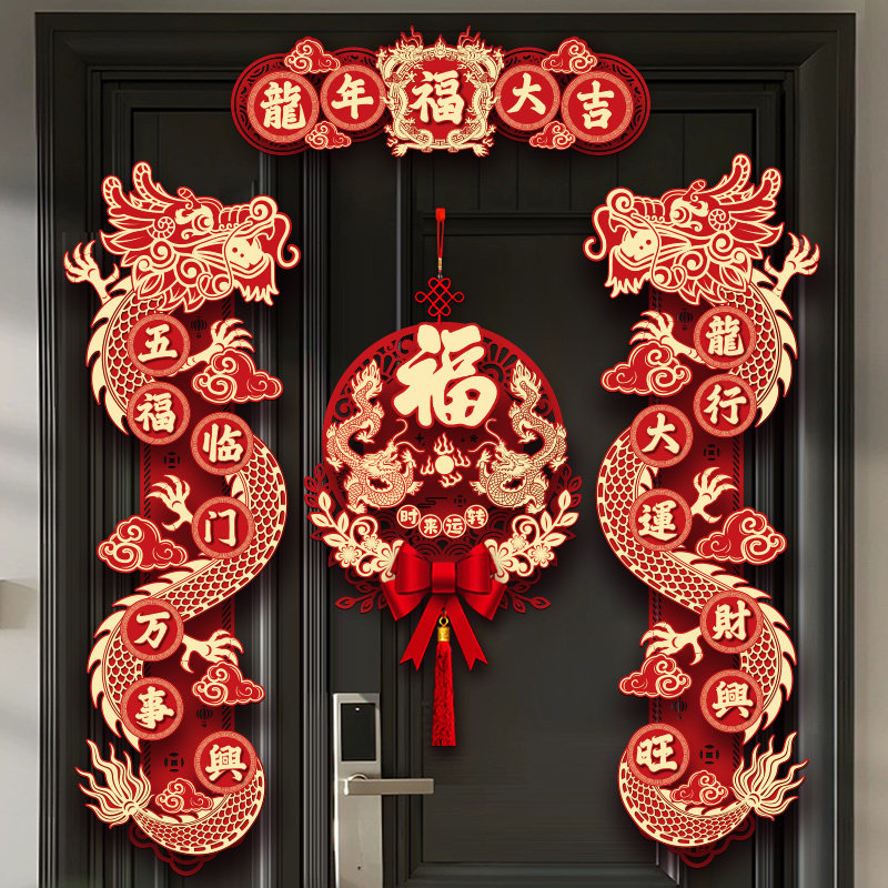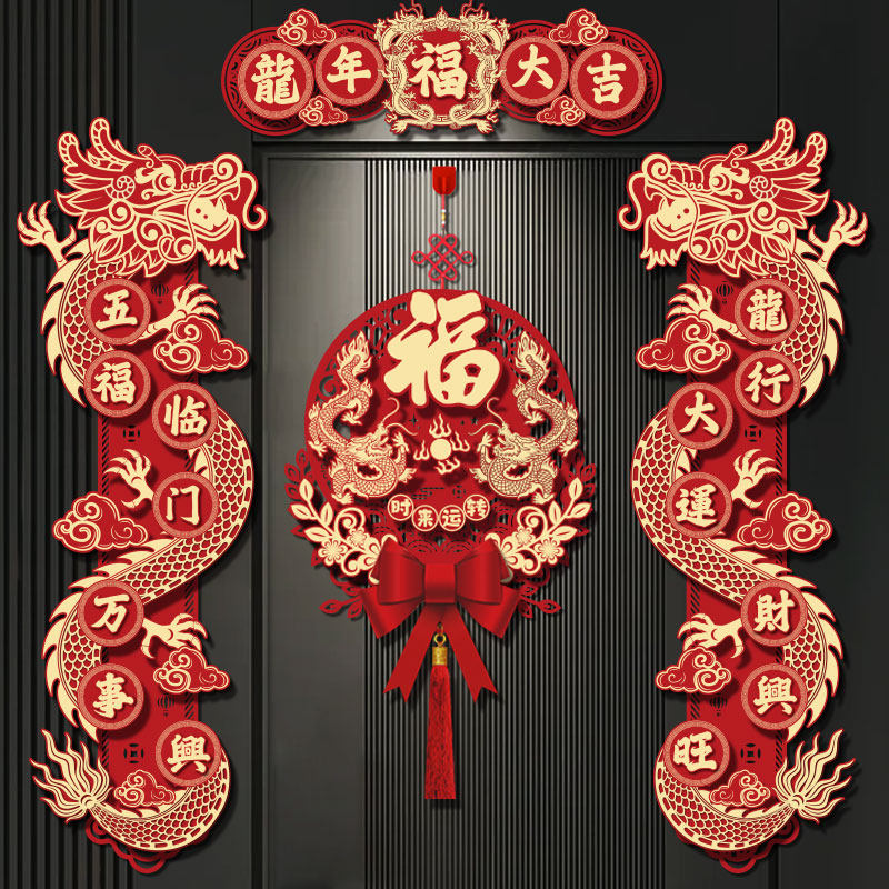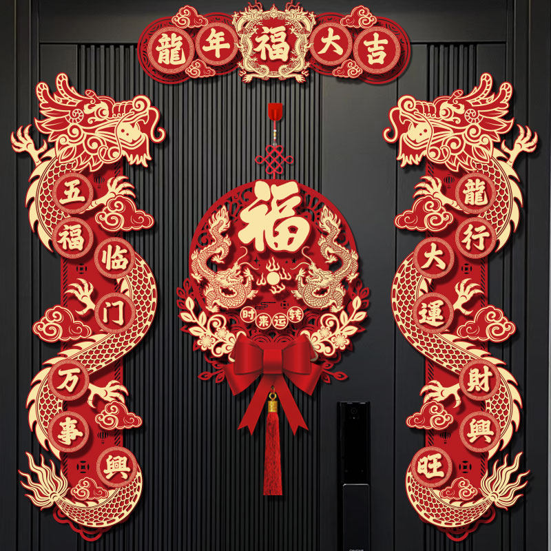 2024 Новый год Драконы Трехмерная бархатная пара Куплет новогодний фестиваль магнитного весеннего фестиваля Весенний фестиваль домашнее благословение слова подвеска