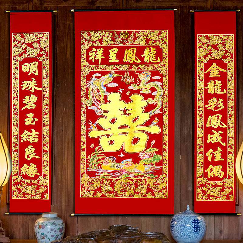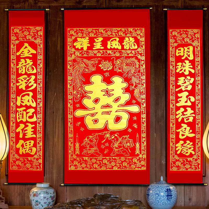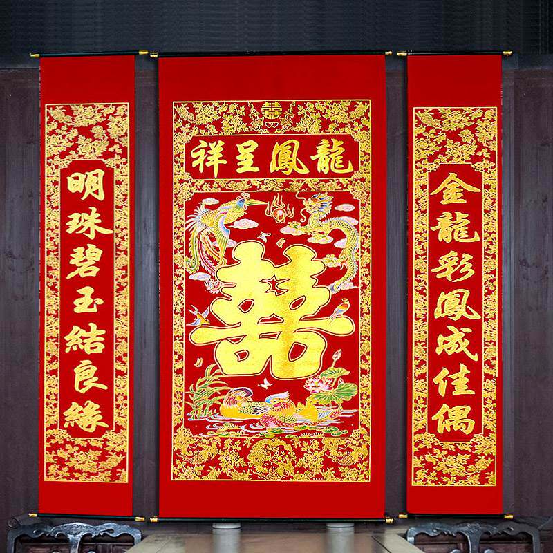 (2) Куплет живописи Чжунганг использует бархатный материалКрюки и маленькие крючки - это ПВХ материалы.