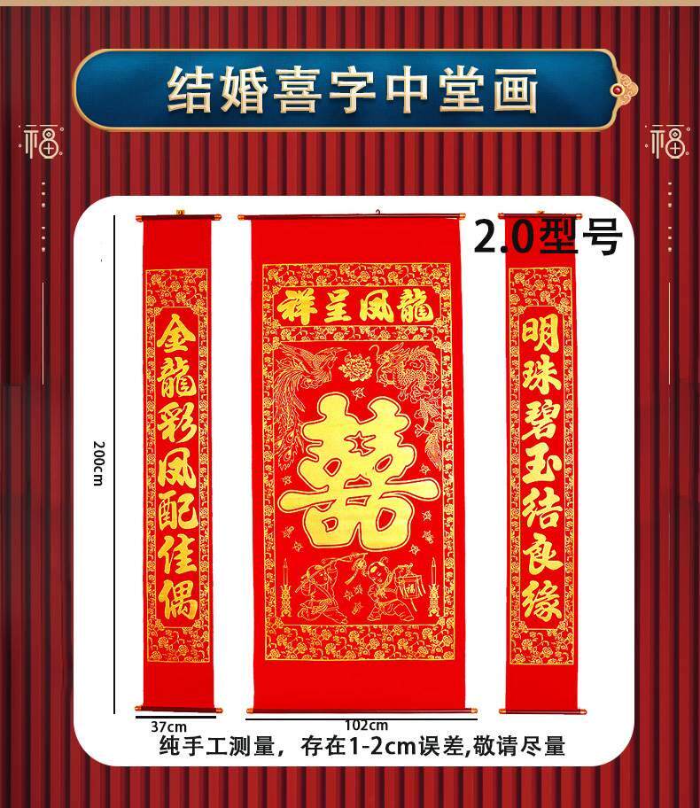 (1) Картина Чжунгана имеет высоту 1,6 метра, а ширина санлиана составляет около 28 см-68 см-28 см; картина среднего холла составляет 2 метра, а ширина санлиана составляет около 37 см-95 см-37 см.