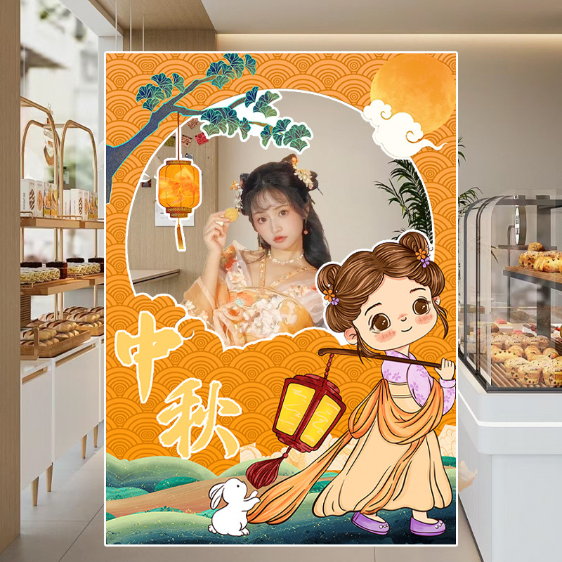 Интернет знаменитости Фестиваль середины осени сцена атмосфера макет украшения магазин украшения регистрация фоторамка фон стена kt доска