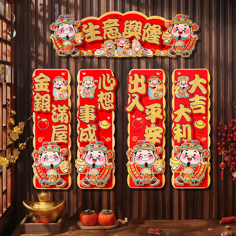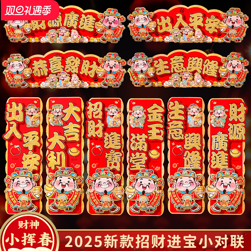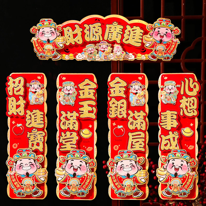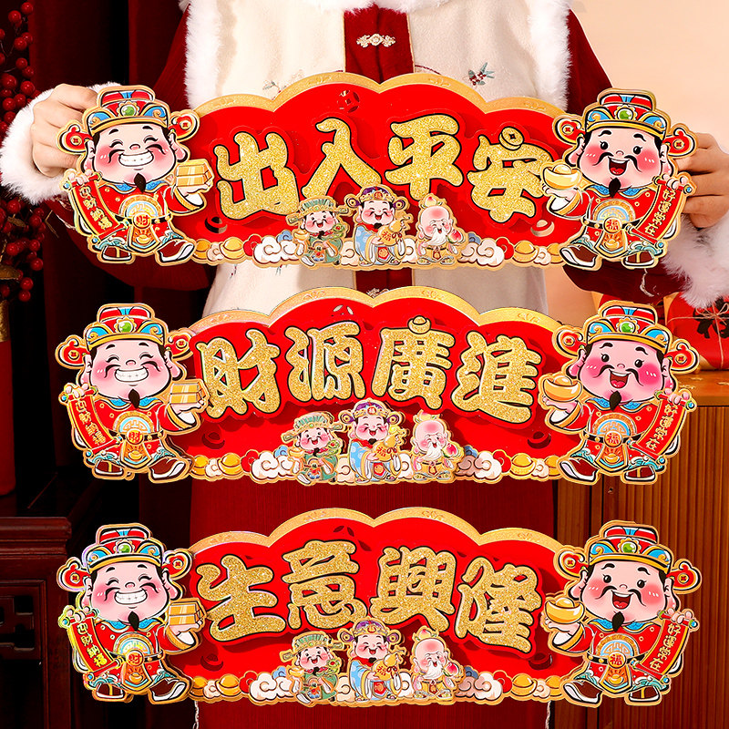 2025 Новый Маленький Куплет Бог Богатства Huishun Новогодняя наклейка на дверь с четырьмя словами Huishun Горизонтальные пакетные наклейки Магазин Весенние праздничные украшения