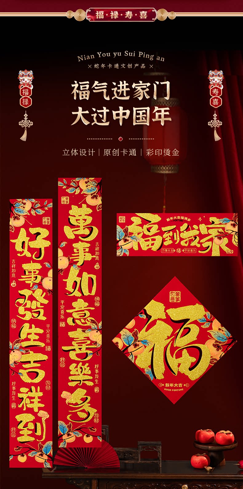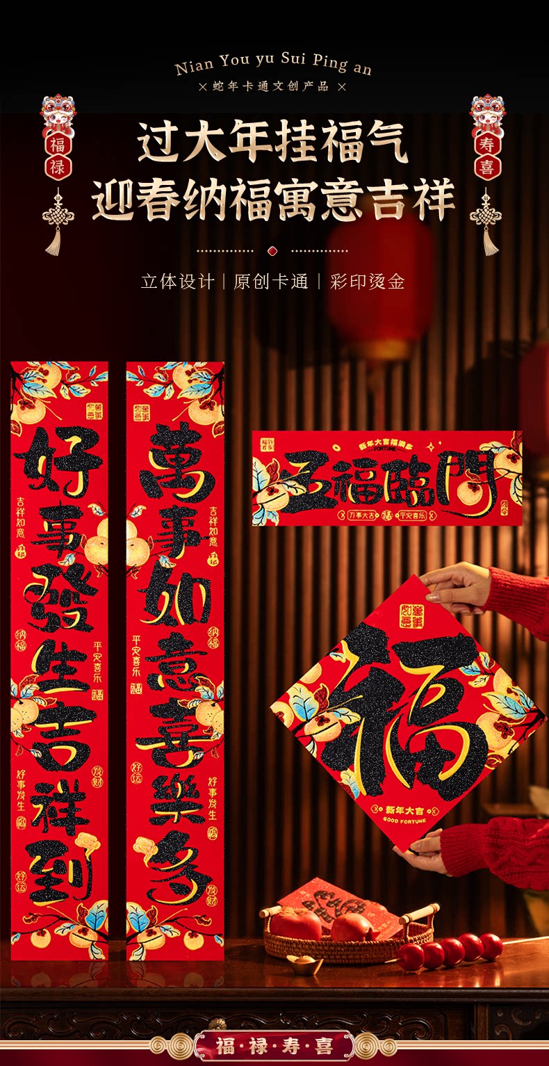Бархатная пара Couple 2025 Новый змея -год Snake Spring Festival Festival Festival Spring Festival Home Self -Adhesive Door Couple