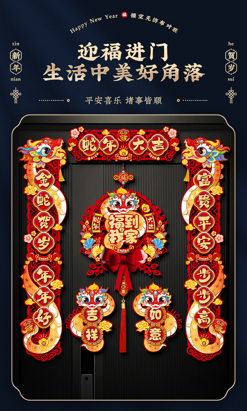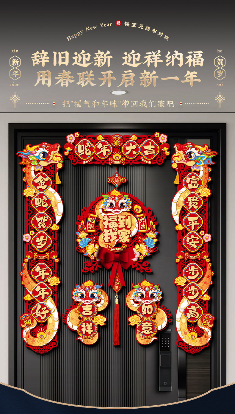 Год змеи Новый год Magnetic Spring United Spring United 2025 Новый весенний фестиваль Дом творческие творческие слова благословения вставать новогодние украшения