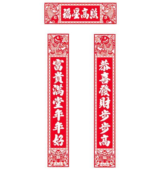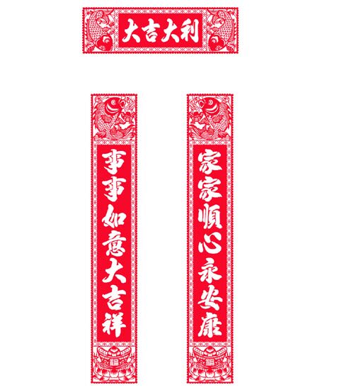 Отличный куплет: длиной 1 метра, ян вырезан (слово выступает): Он в безопасности в семье, пять благословений близки, Новый год хорош, и весна приветствуется.
