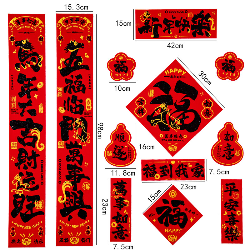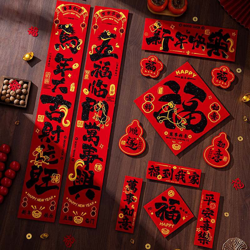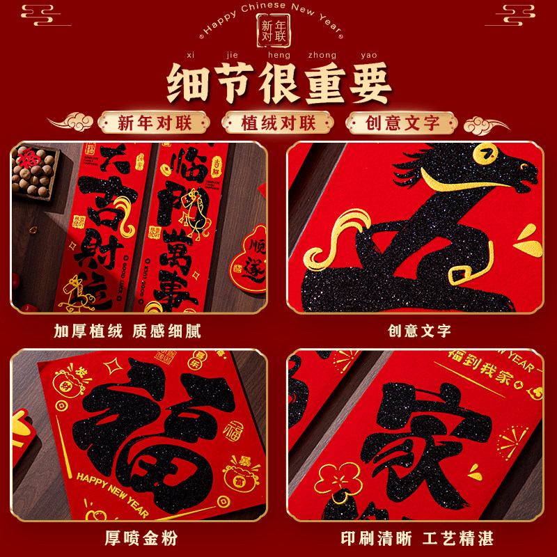 Фланелевые каллиграфические куплеты Праздник весны для дома 2026 Год Лошади Весенние куплеты с самоклеящимися наклейками на дверь с новогодним благословением на дверь