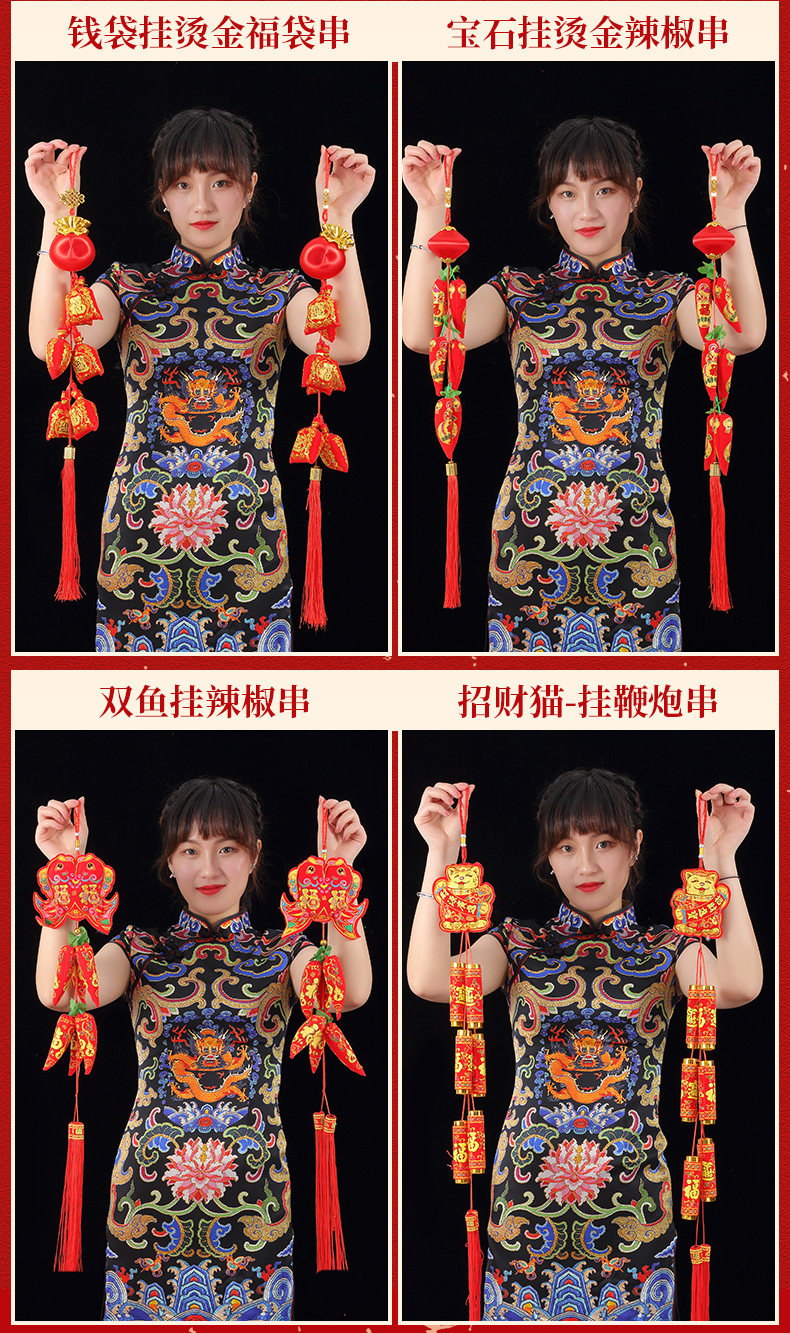 2024 Dragon Год Новый год китайские завязки, а также шашлыки из красного перца, внутренняя планировка новогоднего весеннего фестиваля украшения