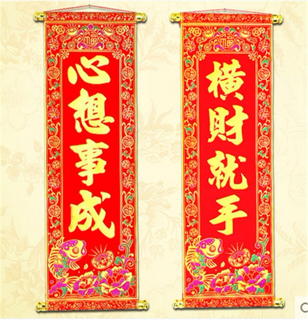 Весенний фестиваль декоративные принадлежности, праздничная бархатная ткань, прокрутка четыреххарактерной куплет -рой из кулона гостиной в гостиной