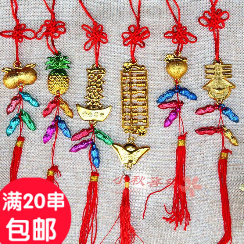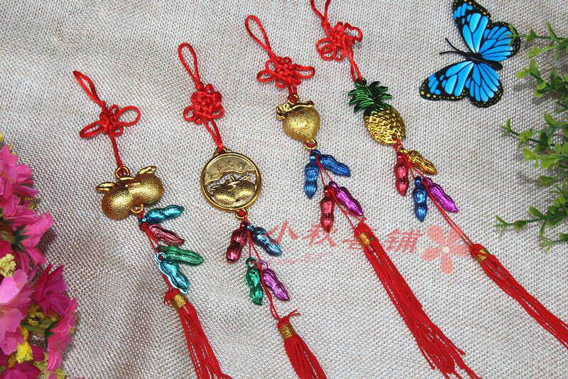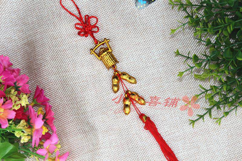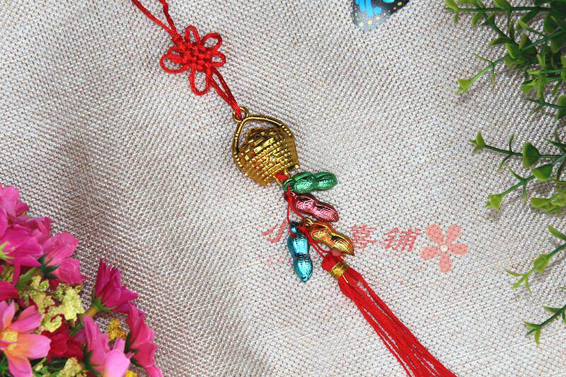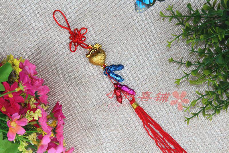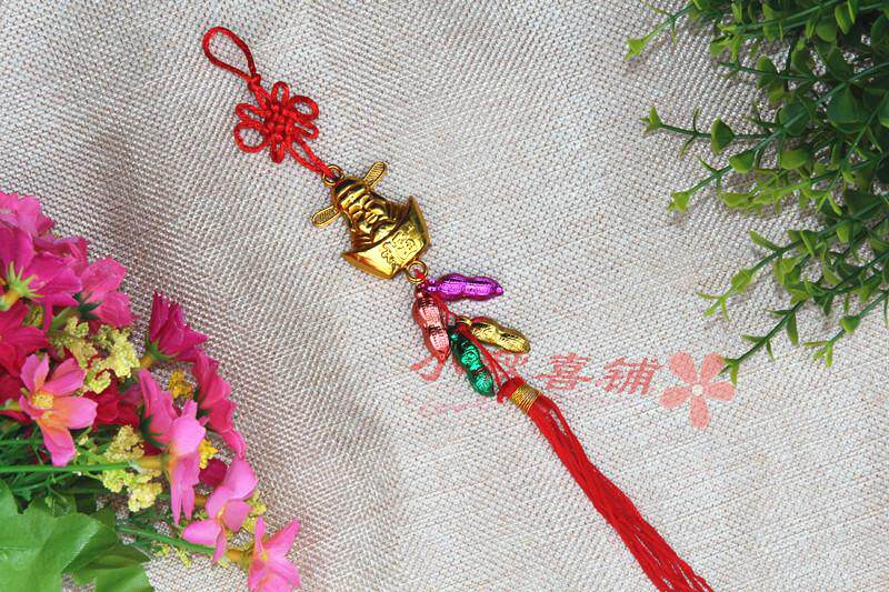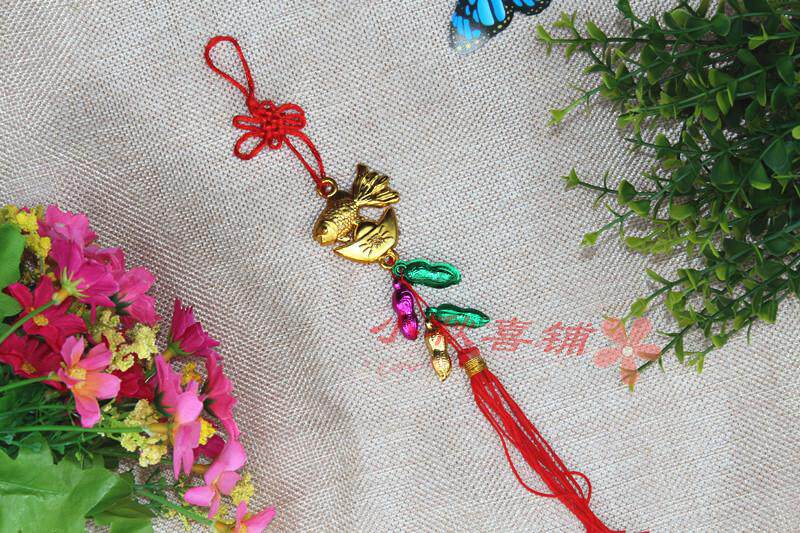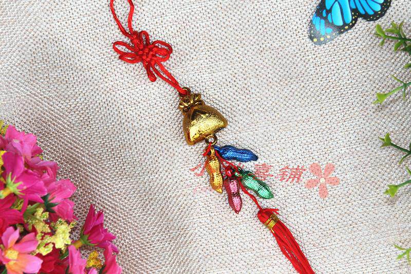 Горячая -продаваемое бонсай растения золото маленькие подвесные сумки ингредиенты Новый год свадьба, разведенный бамбук, небольшое висящее украшение китайское узел