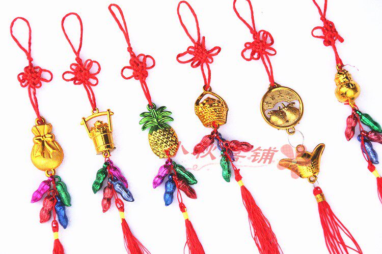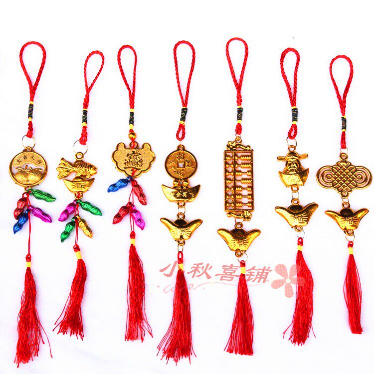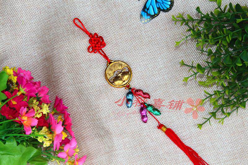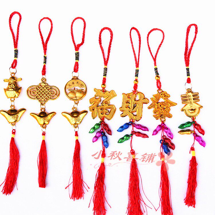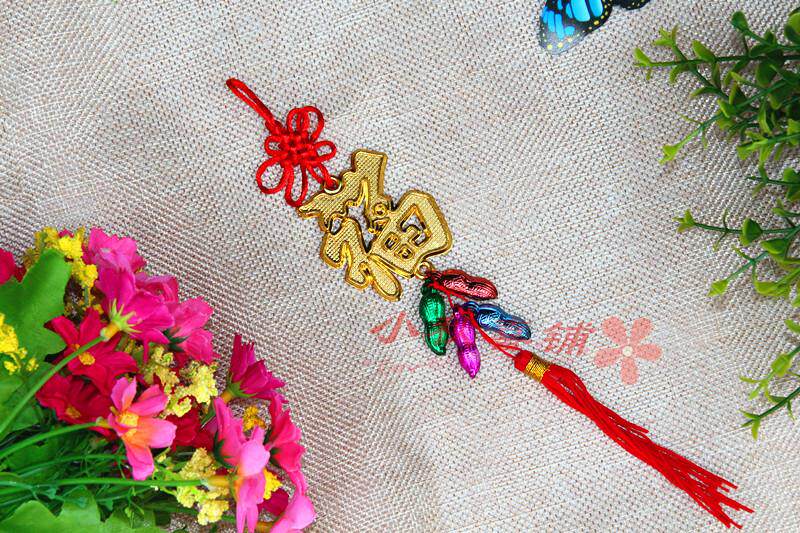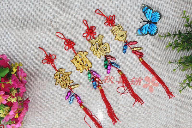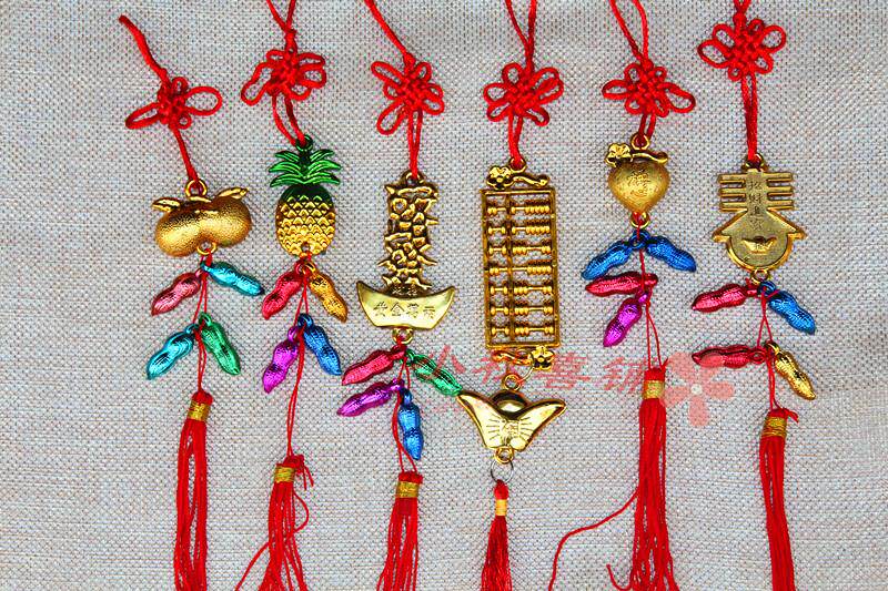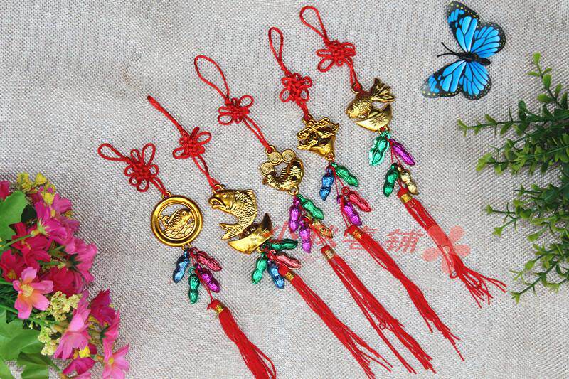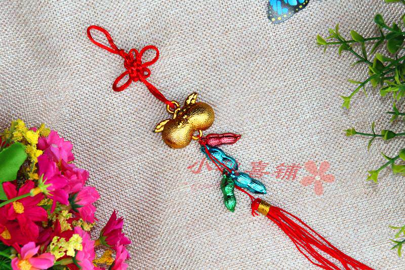 Горячая -продаваемое бонсай растения золото маленькие подвесные сумки ингредиенты Новый год свадьба, разведенный бамбук, небольшое висящее украшение китайское узел