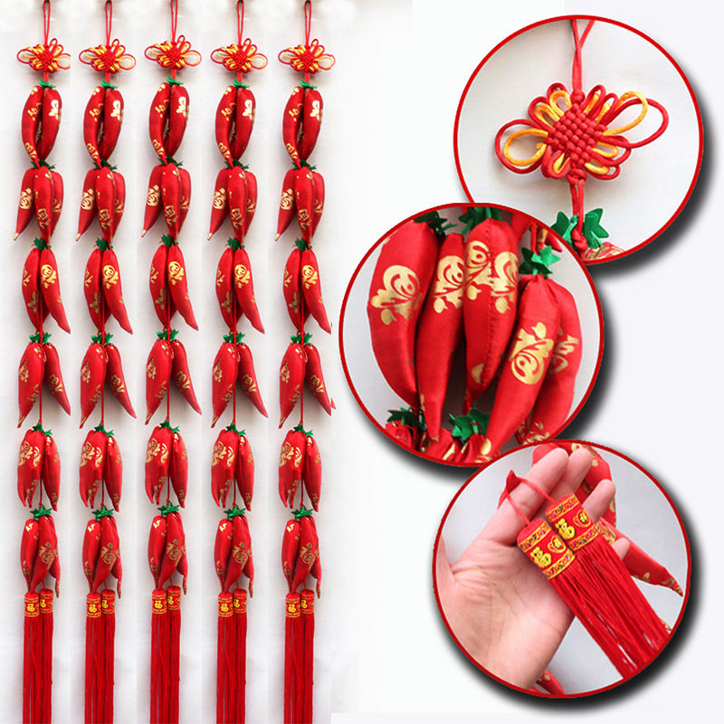 Новые товары для украшения дома, китайский узел, маленький кулон в виде перца, праздничный большой кулон с красным перцем и словами благословения