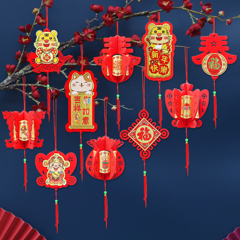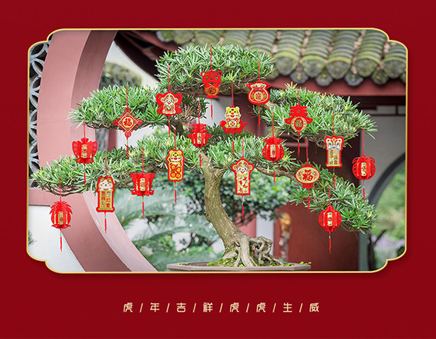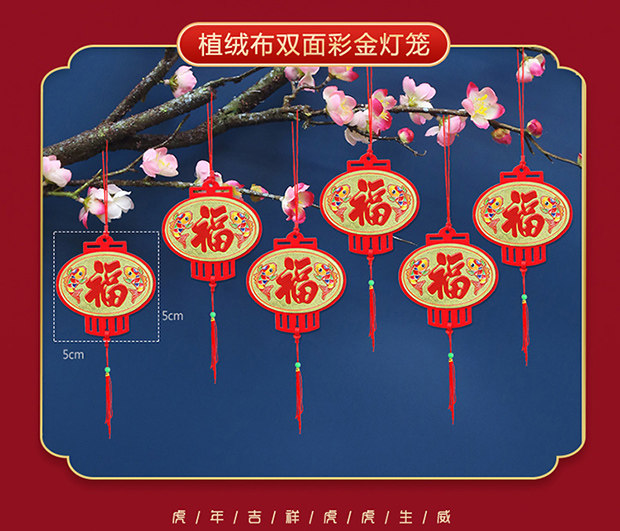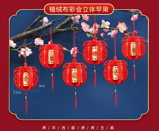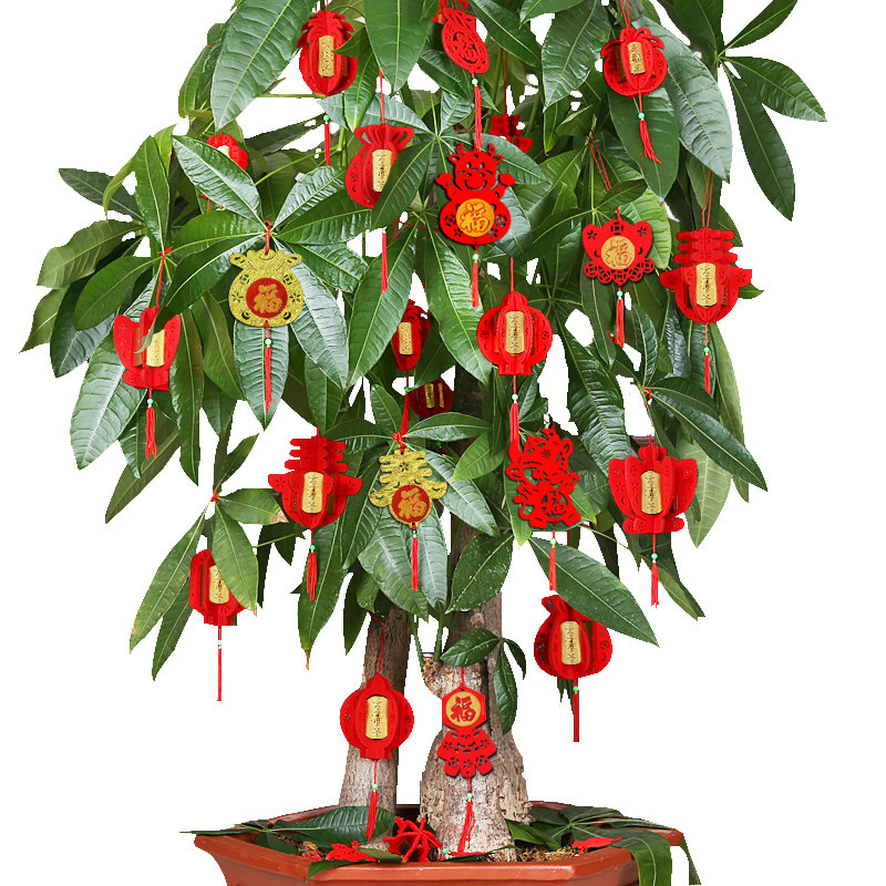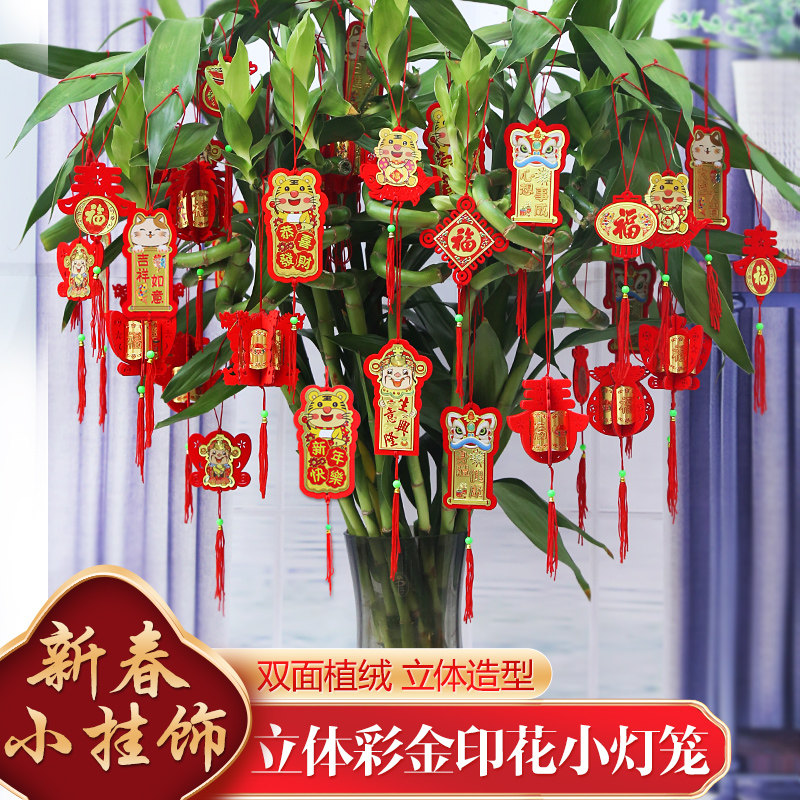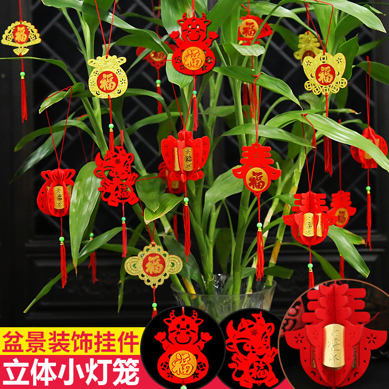 Бархатные небольшие фонари, висящие украшения новогодней сцены в бонсай, закладывая красный фонарь.