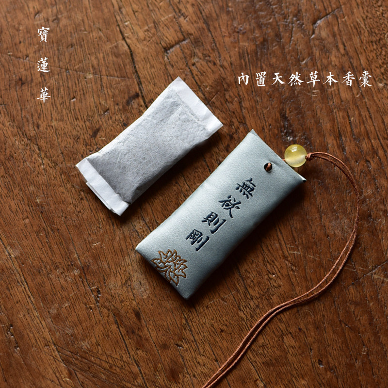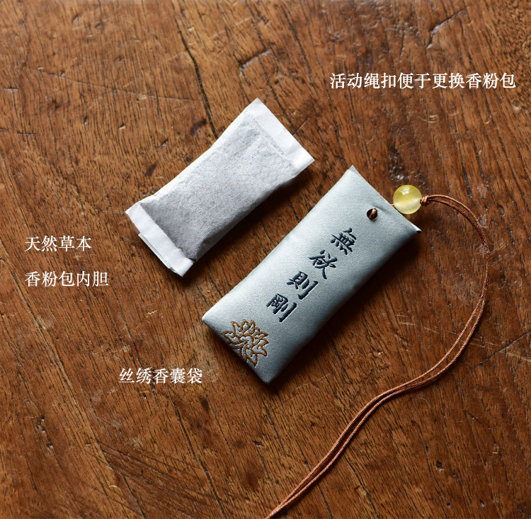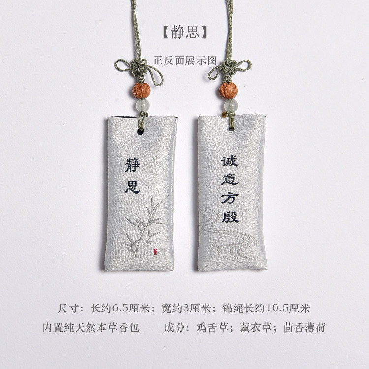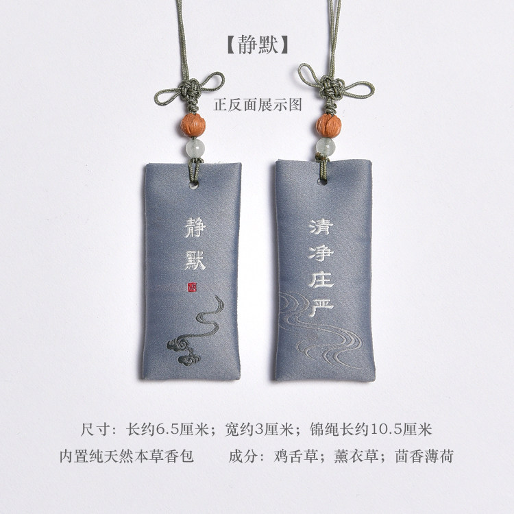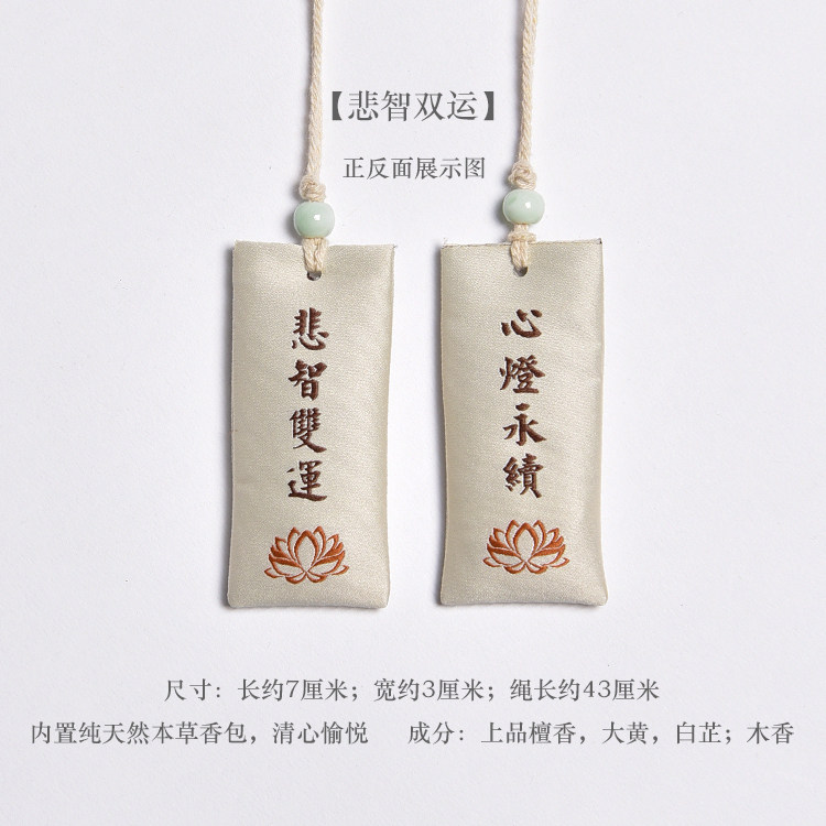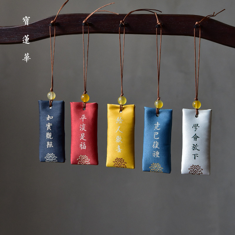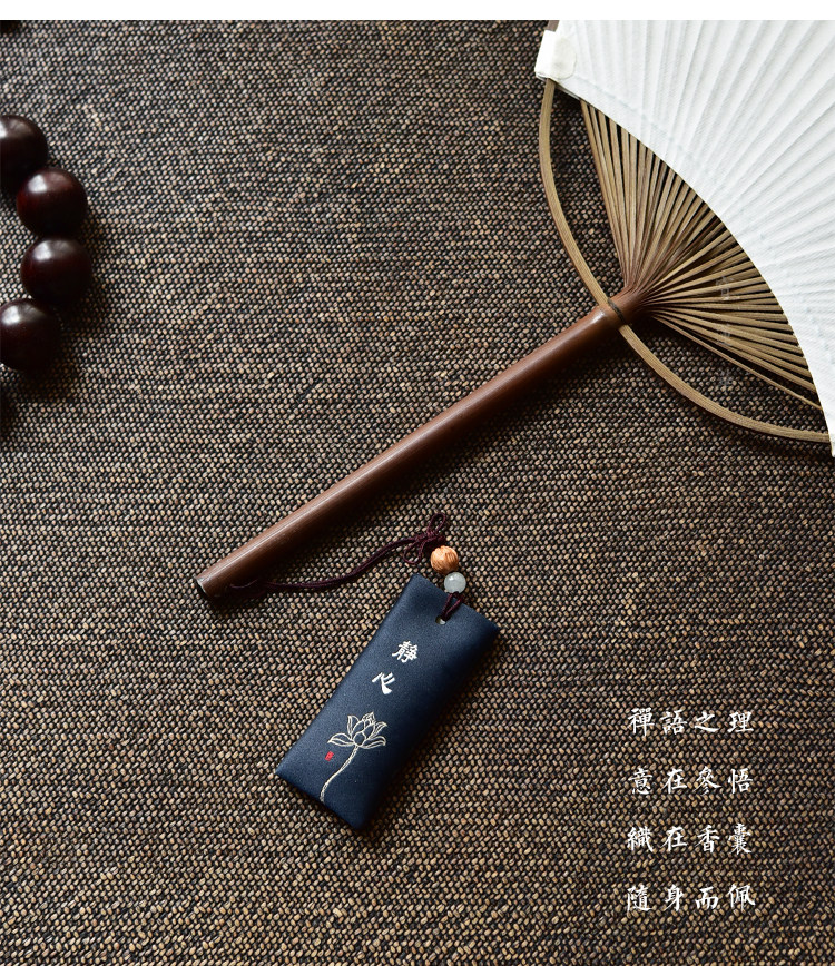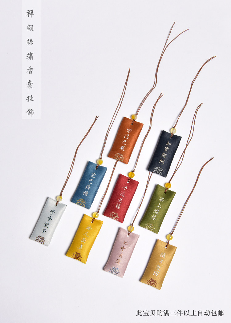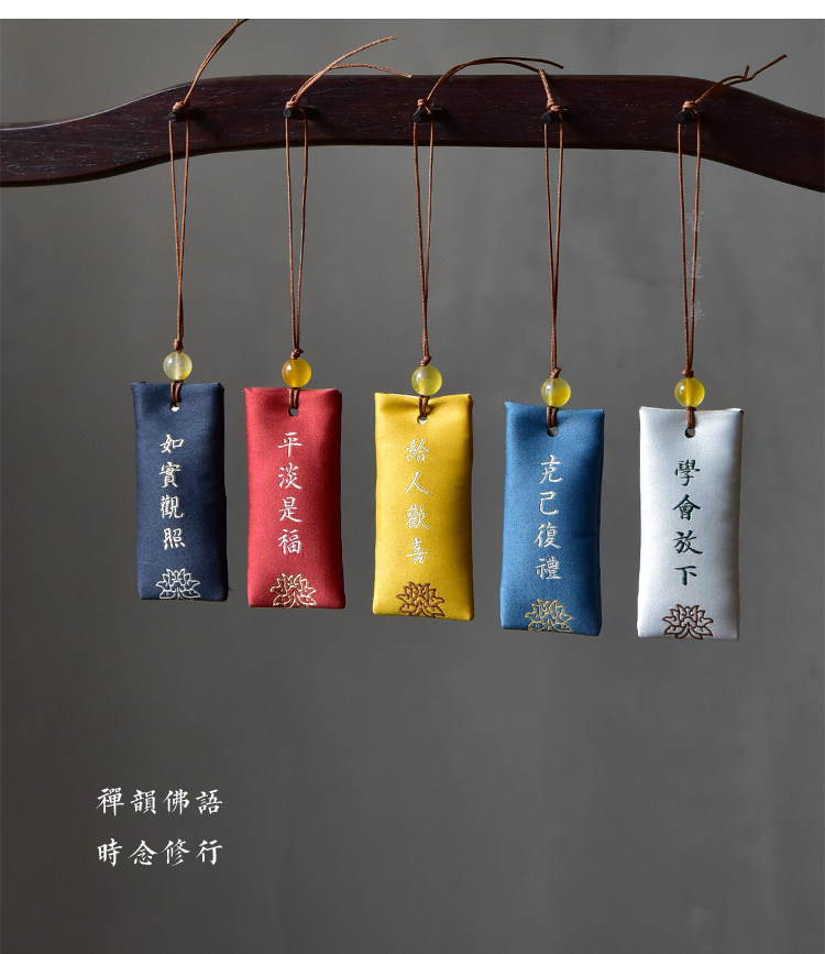 Zen Rhyme шелк, вышитый шахты, висящие ювелирные украшения дзен подвеска молитва Сандаловая древесина Древний стиль, пара саше, ароматная сумка для полыни