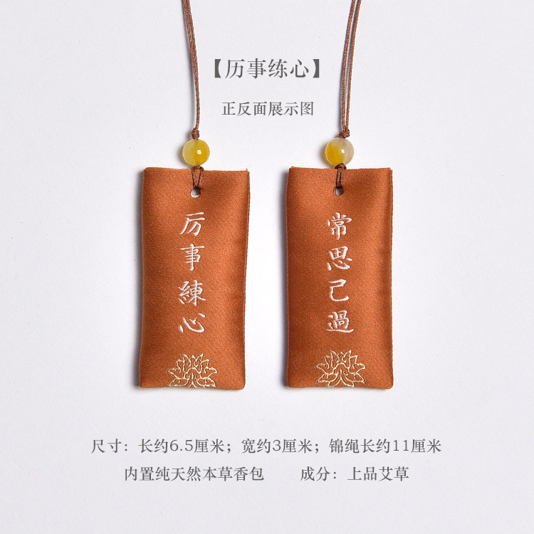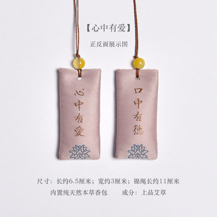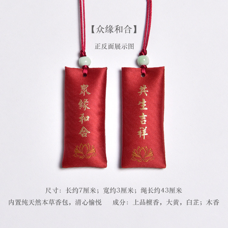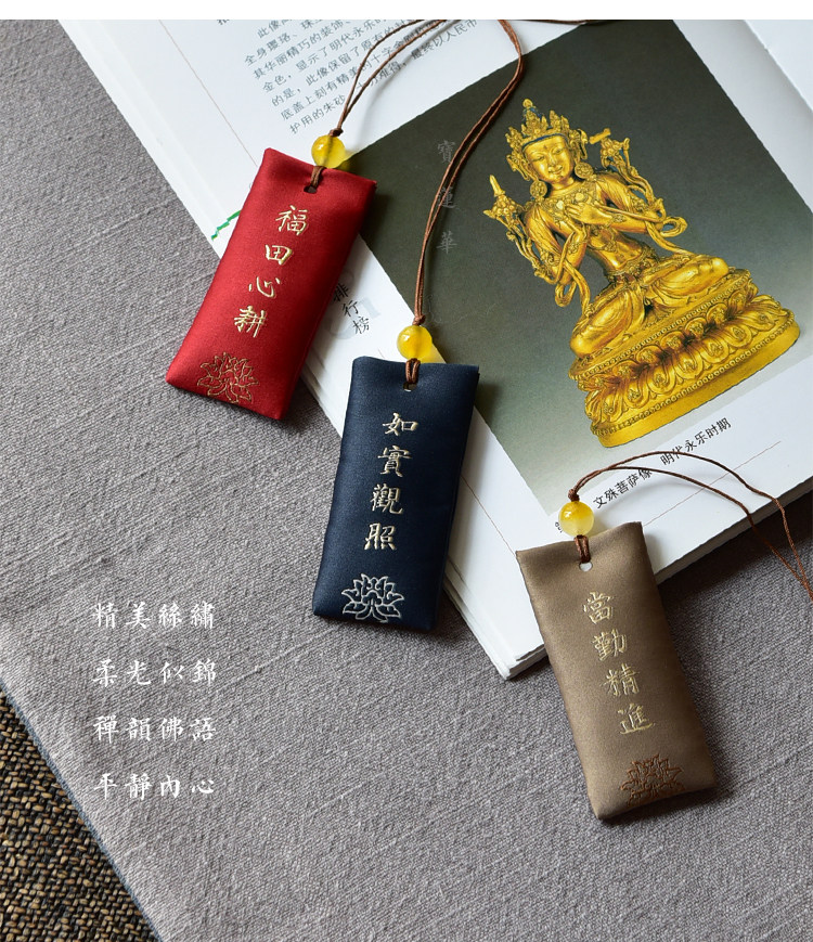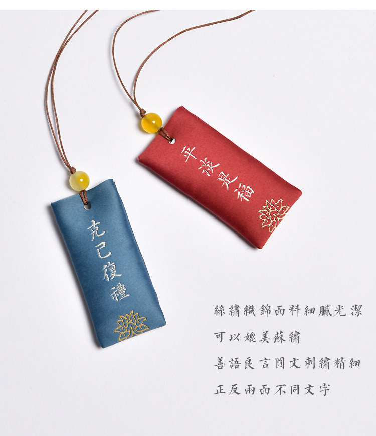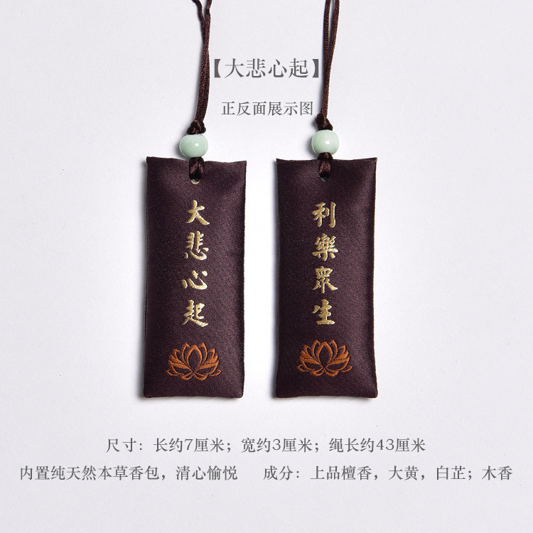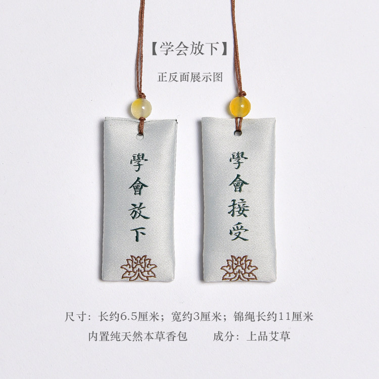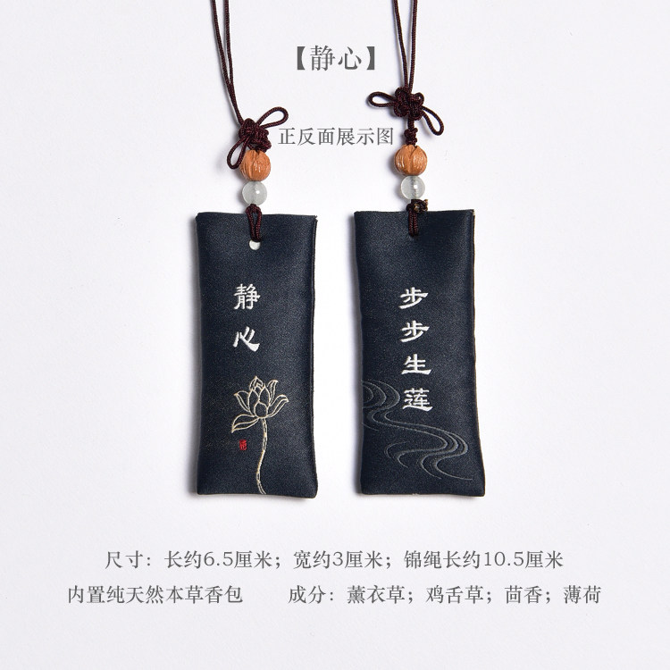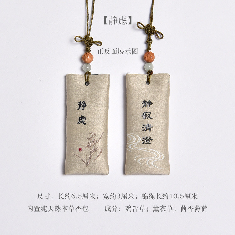 Zen Rhyme шелк, вышитый шахты, висящие ювелирные украшения дзен подвеска молитва Сандаловая древесина Древний стиль, пара саше, ароматная сумка для полыни