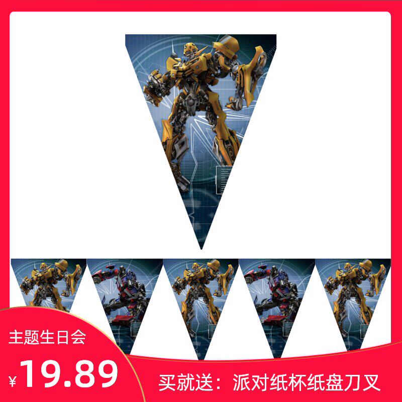 Оптимус Prime Transformers Party Party Party с красочным флагом -треугольником