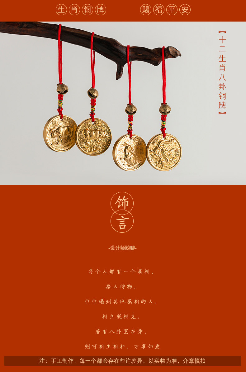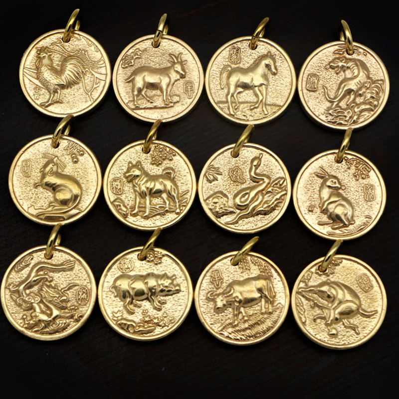 Медный оберег на день рождения, оригинальный латунный брелок, колокольчик, подвеска, китайский гороскоп
