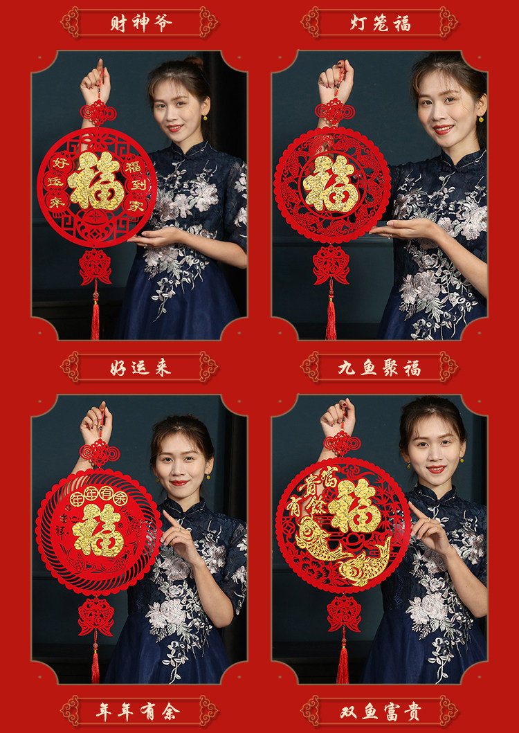 2024 Переезд недавно вошел в домашнюю гостиную, чтобы войти в дом, Новый год, наклейки на дверь персонажа благословения, декоративные декоративные принадлежности