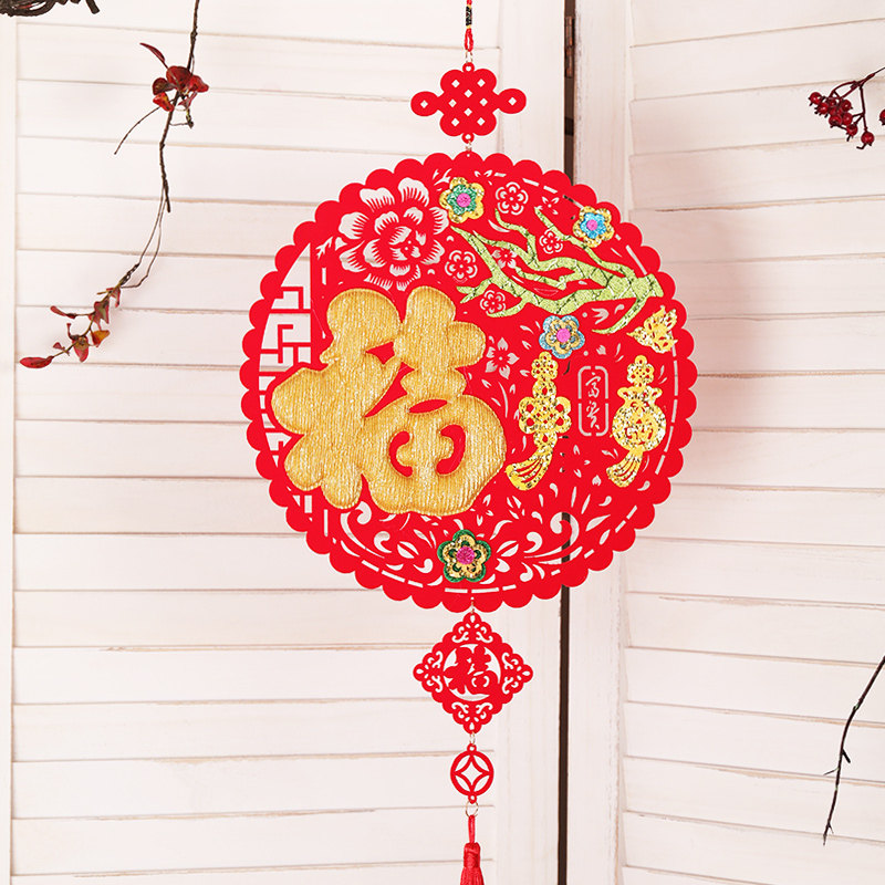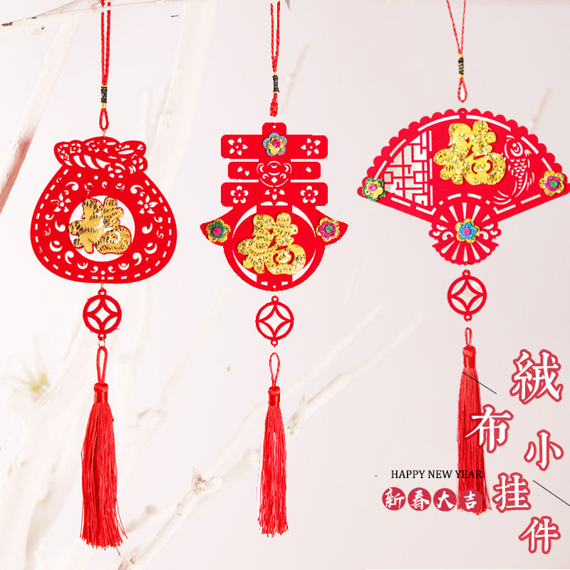 Новогодний фланелевой кулон Праздник Весны небольшой кулон украшения для дома макет новогодней сцены Год Кролика 2023 цвет