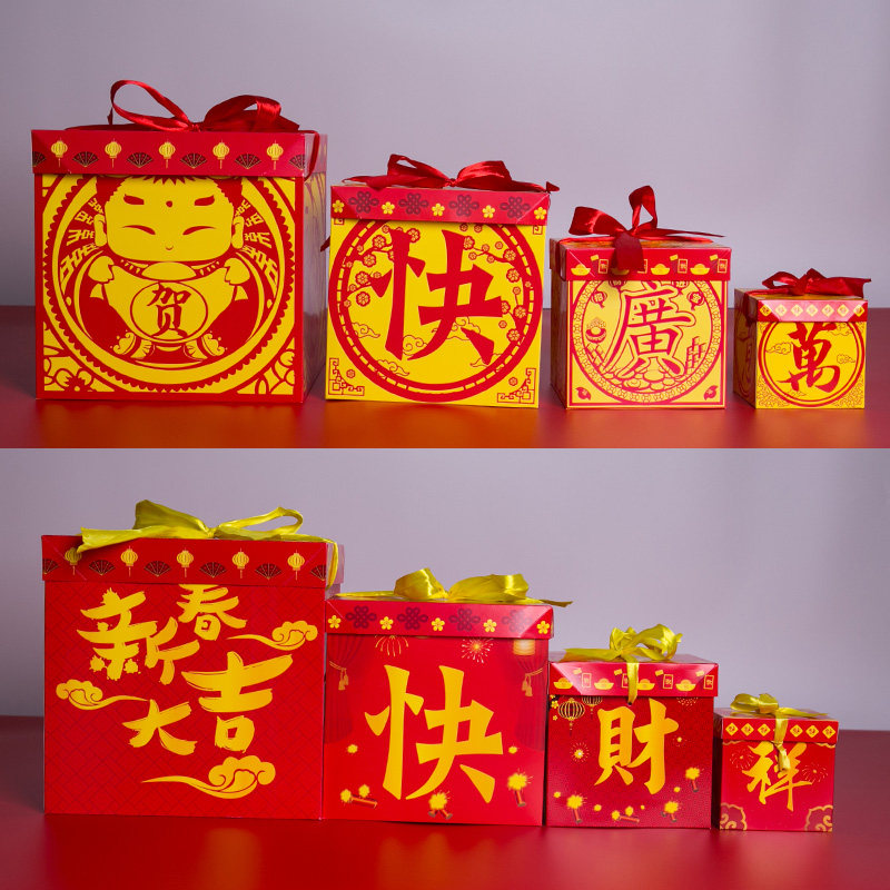 Год Быка Праздник Весны Новогоднее украшение Китайская красная подарочная коробка складной подарочный пакет оконные украшения Новогоднее украшение дома